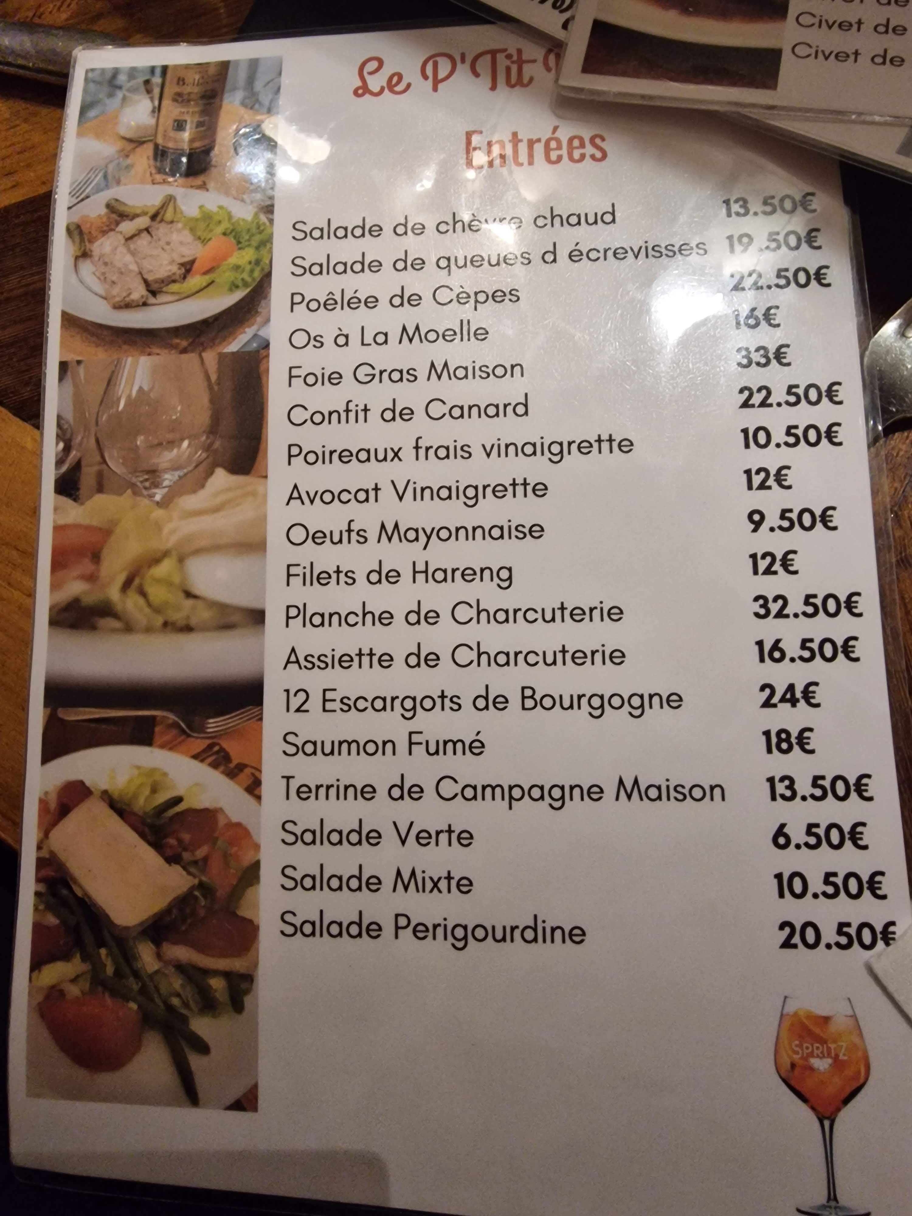 Bonne cuisine, on y trouve du gibier, mais ne jouent pas le jeu de la fourchette carte très cher même avec la réduction. Prenez plutôt le menu et comptez 35€ pour un entré plat dessert. Cocktail très cher : apérol spritz a 15€ Baba au rhum sympa mais très cher également 12€. Rapport qualité prix moyen