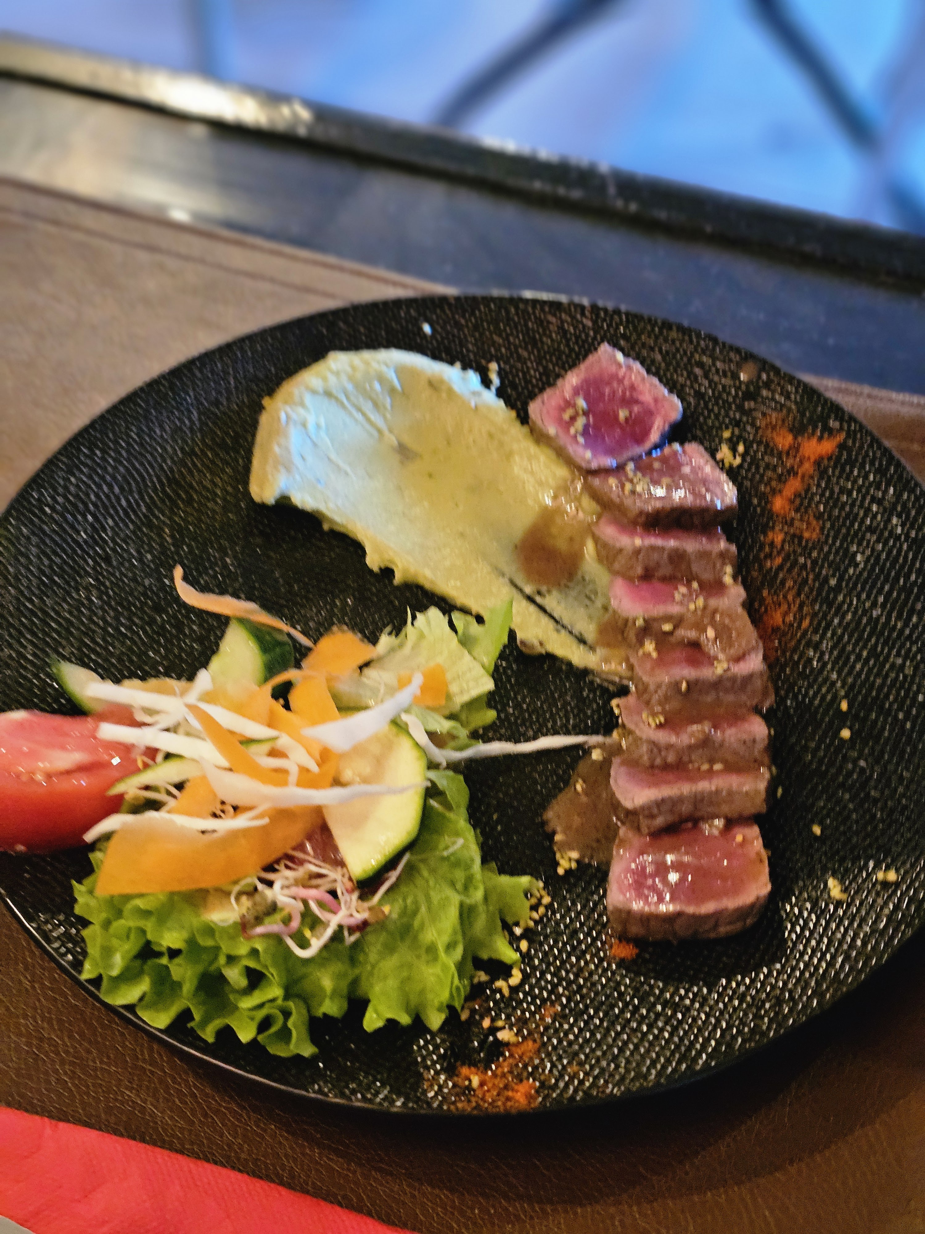 Cadre sympas avec cette petite marre, bonne ambiance conviviale, les plats sont bons et frais, nous nous sommes regalez de ce tartare de boeuf asiatique. c'est sur on reviendra 😉