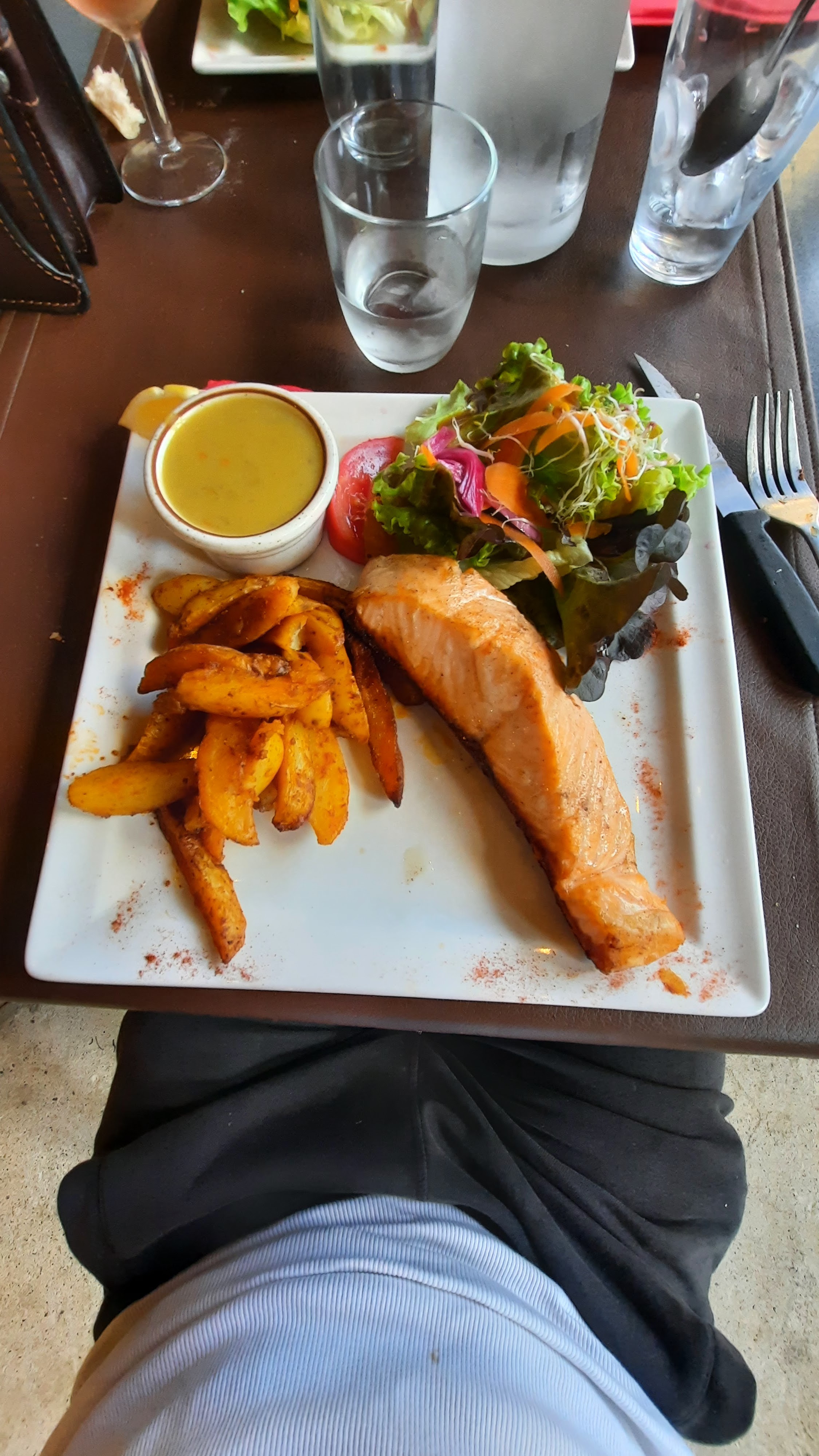 Tout était parfait . Le cadre extérieur est très chaleureux , l assiette est belle et surtout très goûteuse et le personnel est tout simplement très professionnel et fortement agréable. Je recommande vivement sur tous points👍