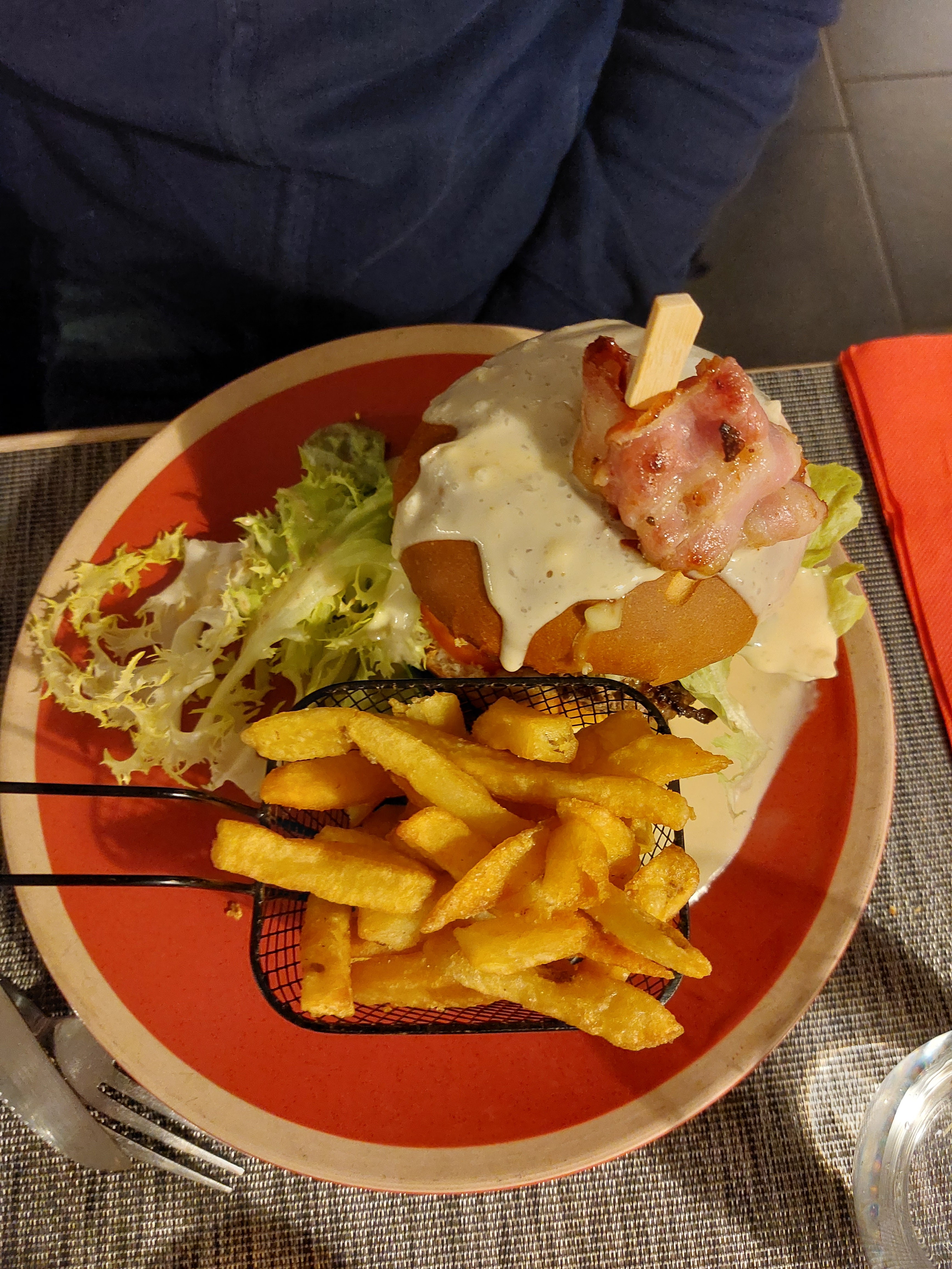 Super moment entre famille et amis.... à l'aveuglette pour le choix du restaurant mais aucun regret Burger extra Filet de bœuf extra Restaurant sans enfant parfait Juste dommage d'avoir mangé à l'étage...à refaire en cave Et petit aparté, la chantilly était parfaite avec le petit café.... merci au serveur