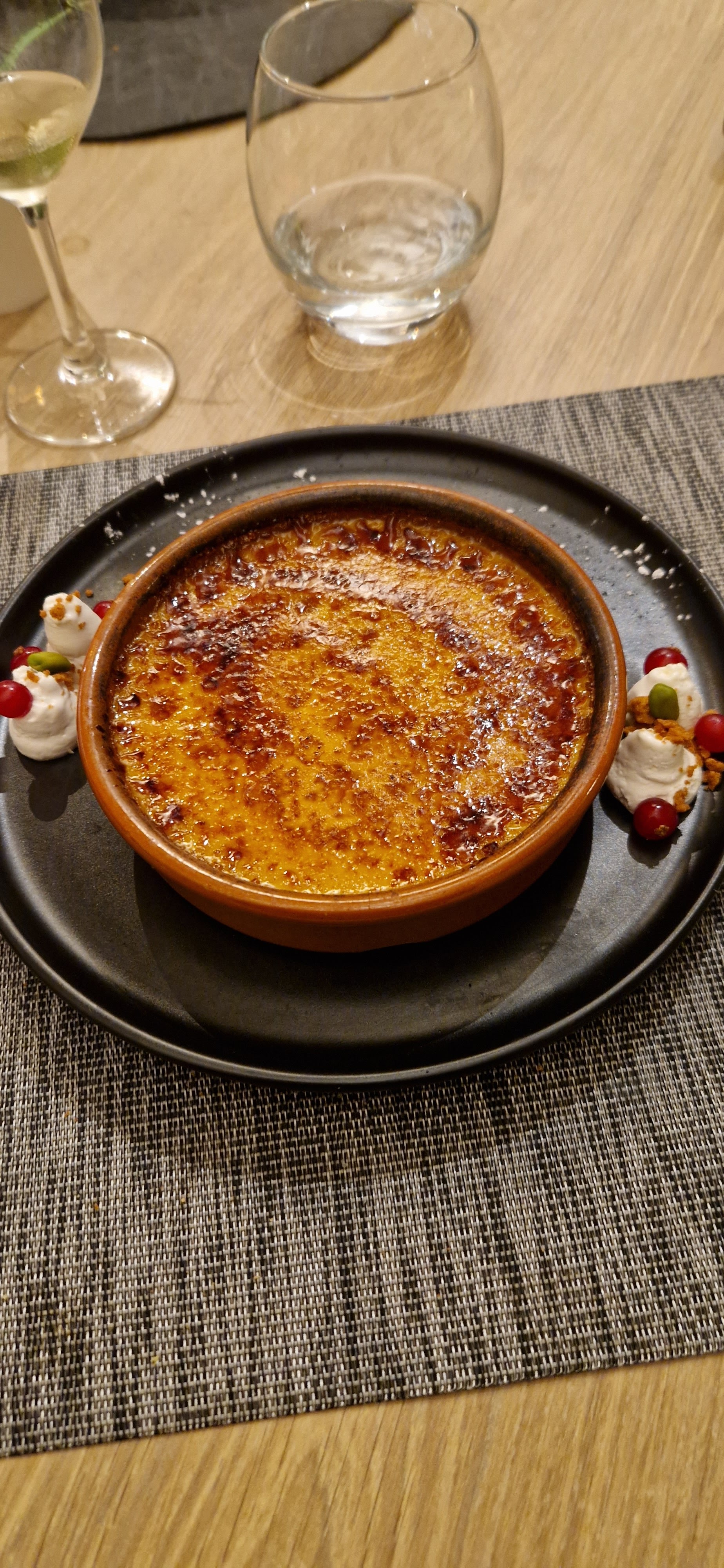 Le service était bon mais nous avons été déçus par la nourriture ici. Les tartas de steak avaient besoin de plus d'assaisonnement ou le dîner devrait être autorisé à se rattraper. Le dauphinois au poulet était fade. La crème brûlée n'avait pas de croûte.