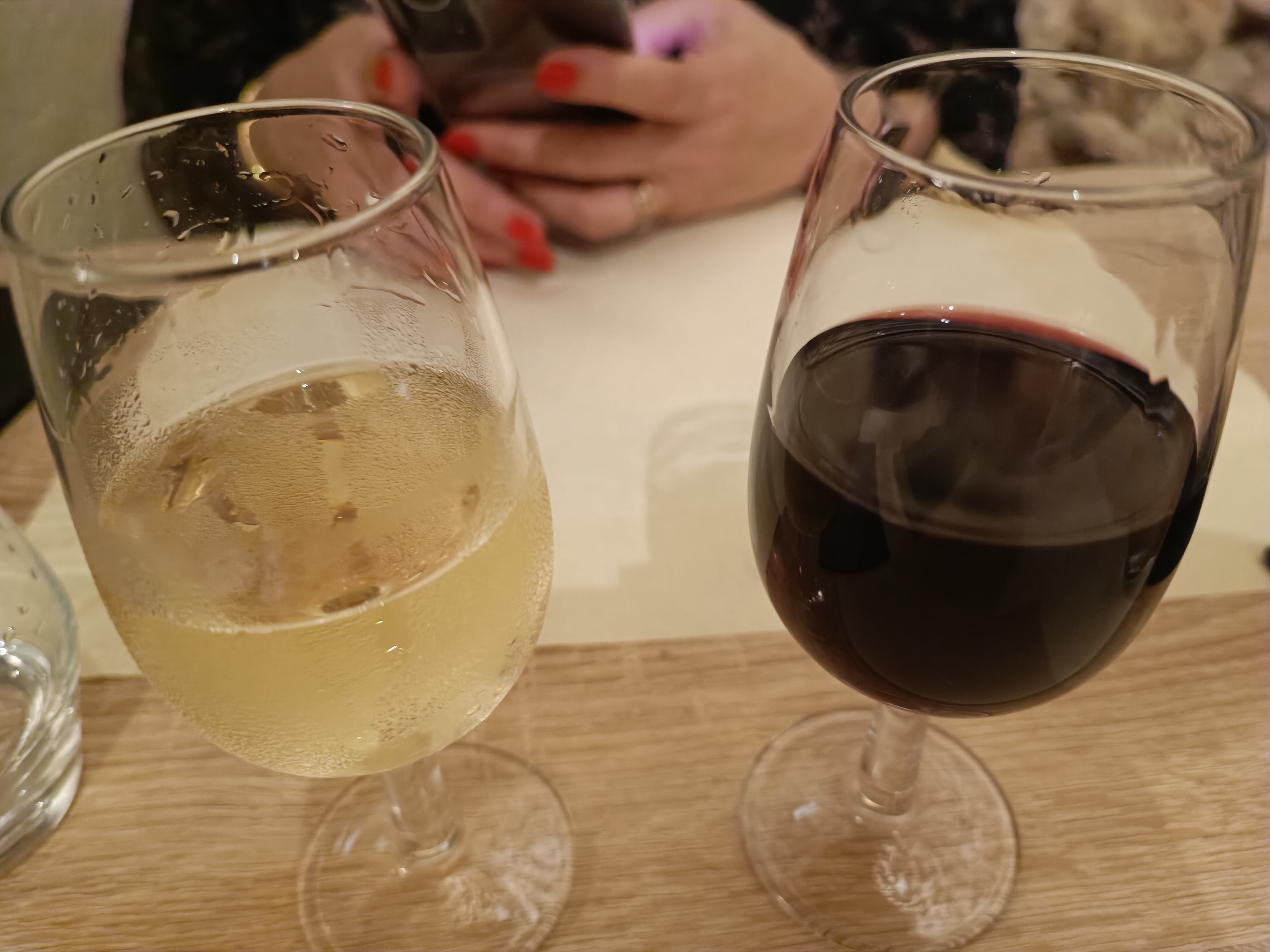 Le bocal à partager (jambon de Reims), quel délice ! Et que dire de la panna cotta en entrée. Un régal pour les yeux et la bouche. Mon poulet jaune était tendre et la sauce vigneronne était très bonne. A refaire, j'aurais demandé expressément une table dans la cave. Nous ne savions d'ailleurs pas que nous pouvions aller y choisir notre vin. Qu'importe, l'endroit vaut le détour. Seul petit bémol : nous avions commandé une bouteille de vin à 23 ou 23,50, mais on nous a servi une bouteille à 26 euros. Pas grave en soi. Là où j'aurais dû être plus attentive, la note. Un verre de merlot à 7,50 euros compté mais jamais commandé puisque nous avions pris une bouteille. Le personnel est à l'écoute et bienveillant, mais je pense que notre serveur débutait.