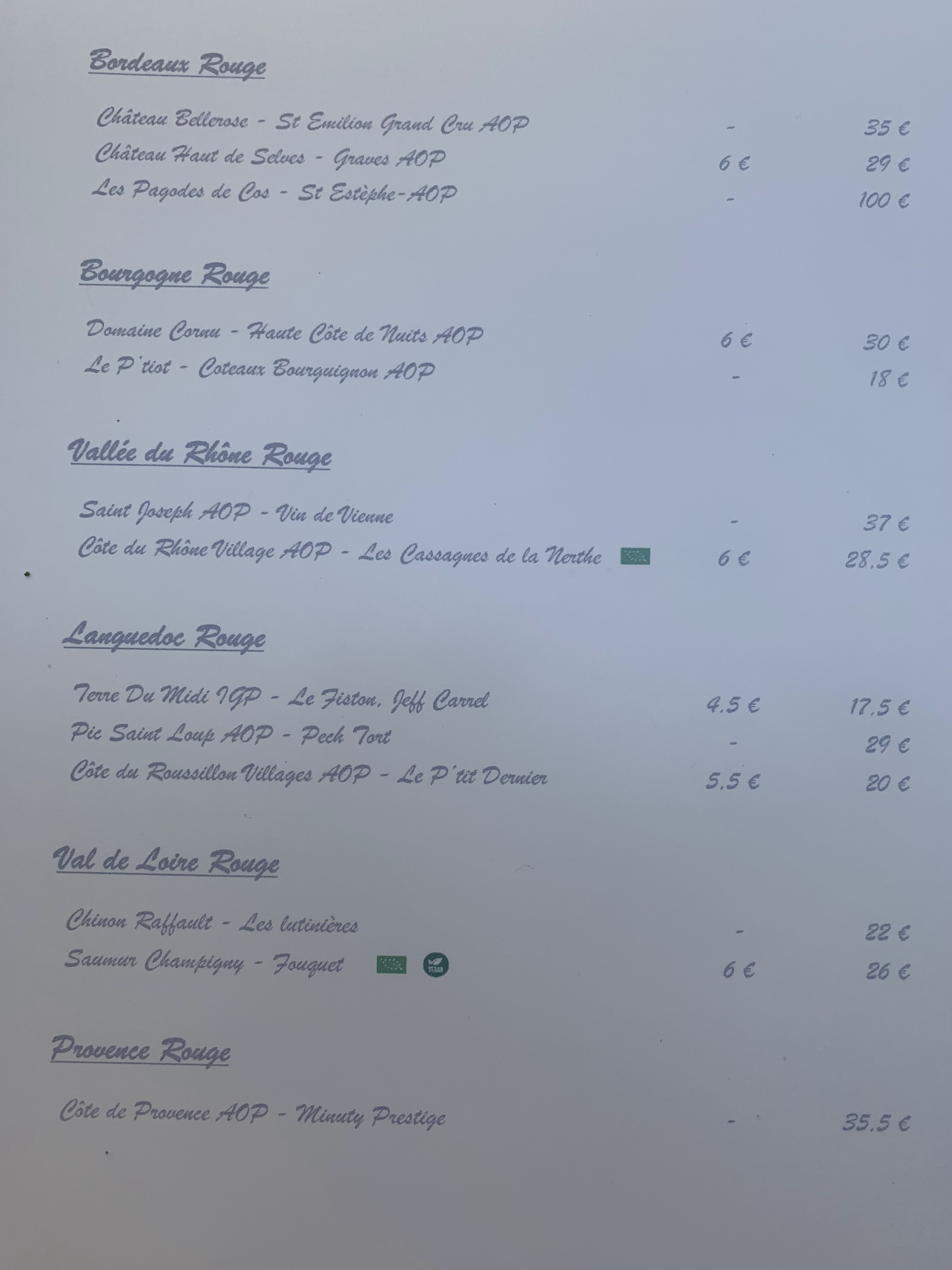 Topissime 🌷 Nouvelle carte Extra 🥰🥰 La carte des vins est au top🌷 Je recommande vivement,allez y les yeux fermés 😉
