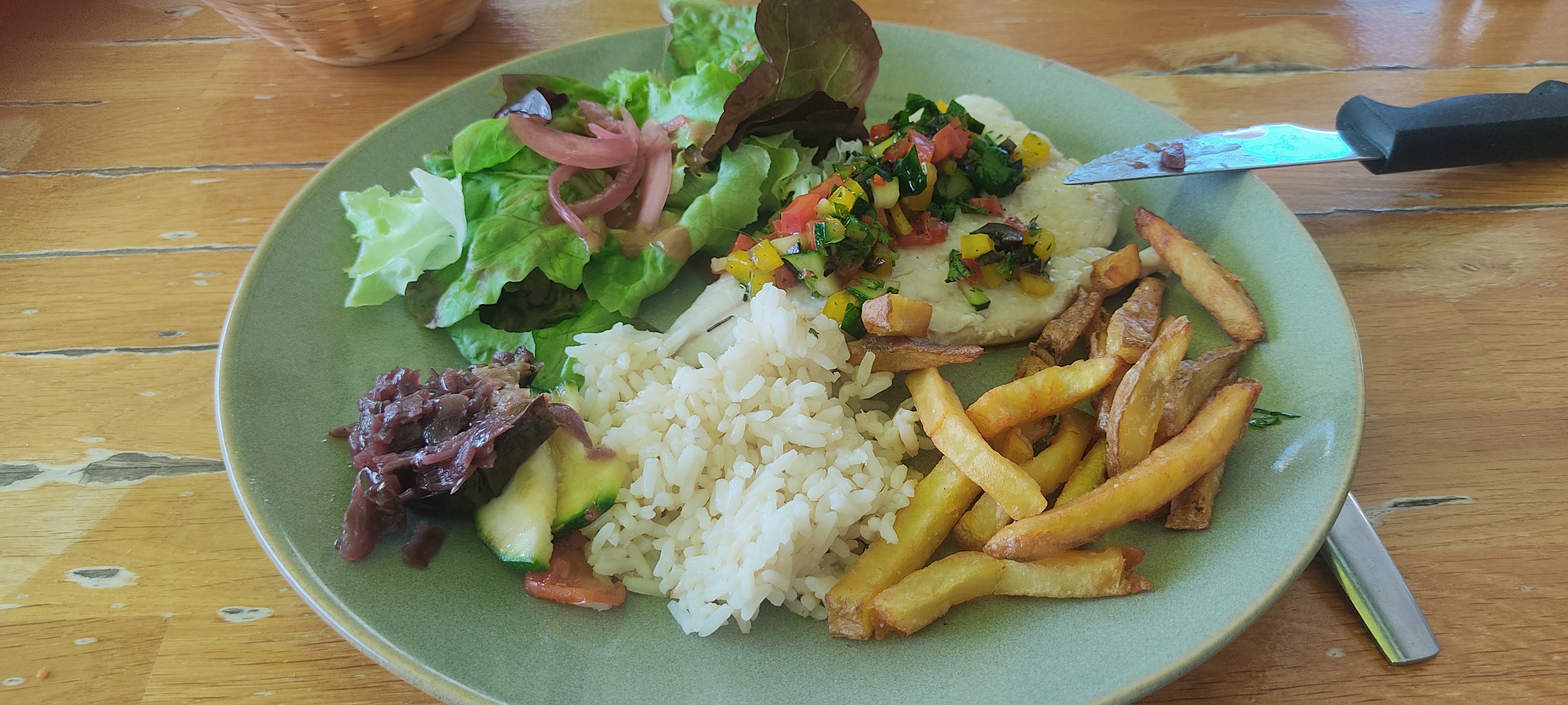 Serveuse très bien. Le repas est correct mais simple dommage qu'il y est pas de sauce avec la salade.