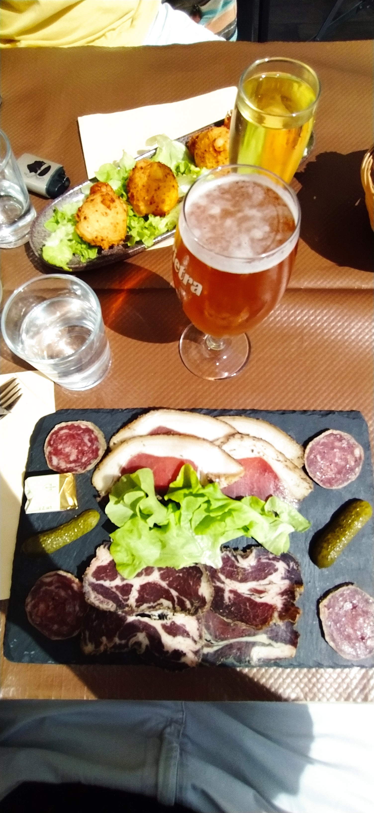 Est-ce la fin de saison ou la fin du service du midi, mais la qualité des plats servis n'était pas au rendez vous. La salade de légumes du jour n'avait rien de cuisiné (légumes crus juste grossièrement coupés en cube, pas une petite herbe pour relever) et la charcuterie un peu rance, sèche et tranchée sans finesse. Bref, c'est dommage de partir d'un restaurant en ayant l'impression d'avoir été pris pour un touriste de passage. Par contre, bonne ambiance, serveur sympathique et belle vue.