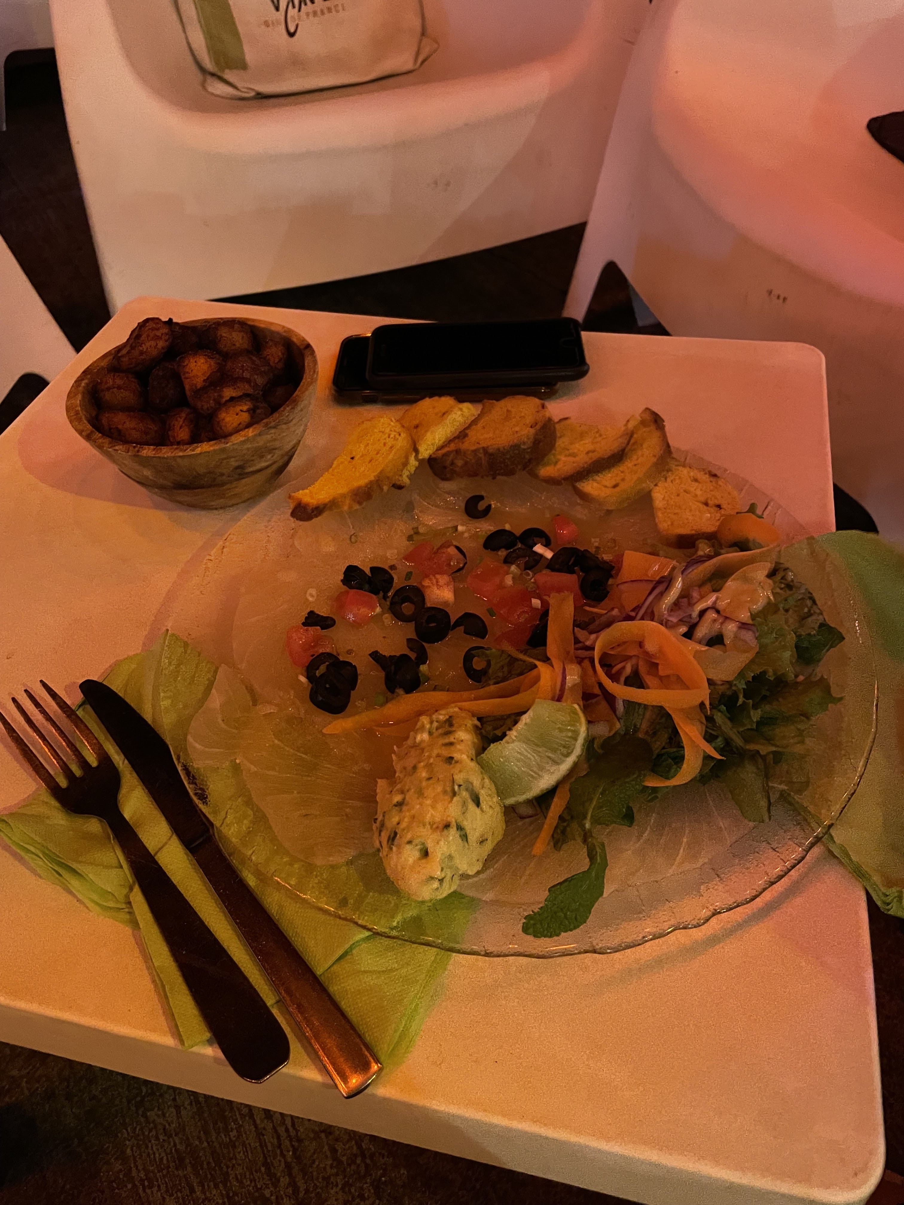 Endroit sympathique, bonne ambiance lumineuse, on s’y sent bien. Malheureusement les assiettes tapas que nous avons choisies ne nous ont pas du tout régalés et nous ne les avons même pas terminées. Le carpaccio de poisson était gorgé d’eau, pas de goût, idem pour la rillette sans saveur. Boudins créoles pas très bons, sans intérêt. Beaucoup (trop) de salades dans l’assiette pour une assiette tapas. Frites surgelées. Bref, bien pour boire un coup mais sans les tapas qui en plus d’être moyens ne sont pas donnés.