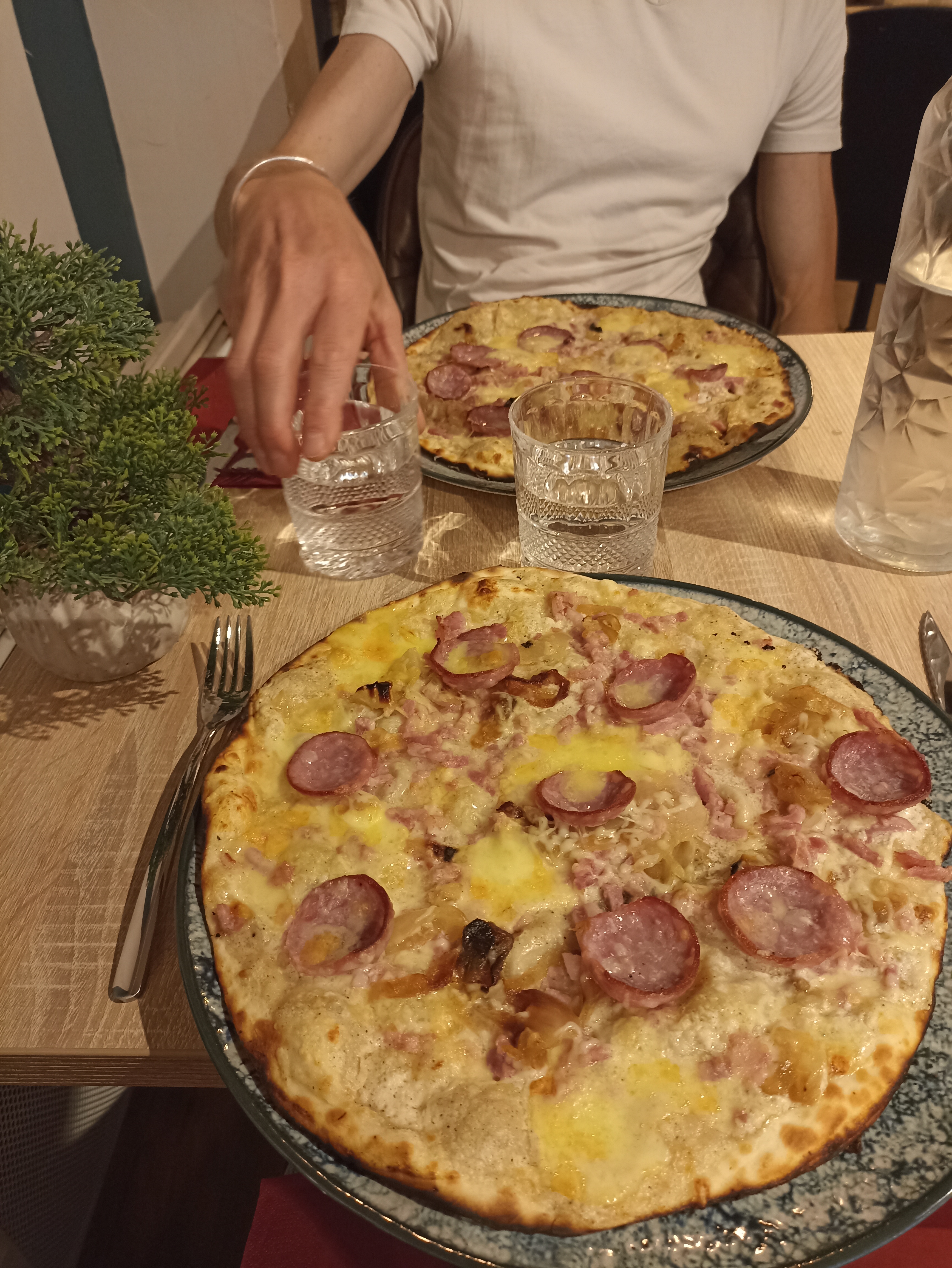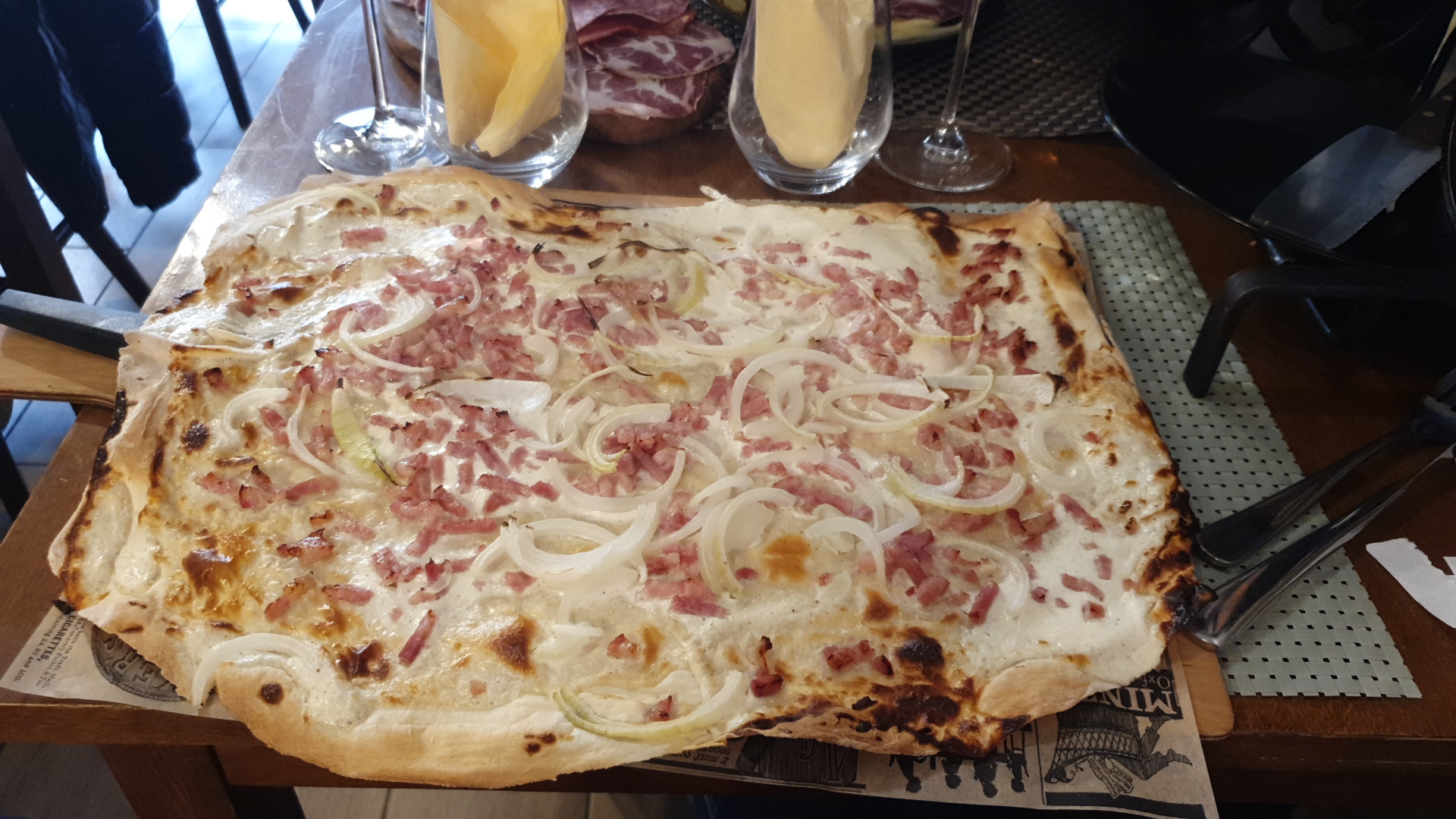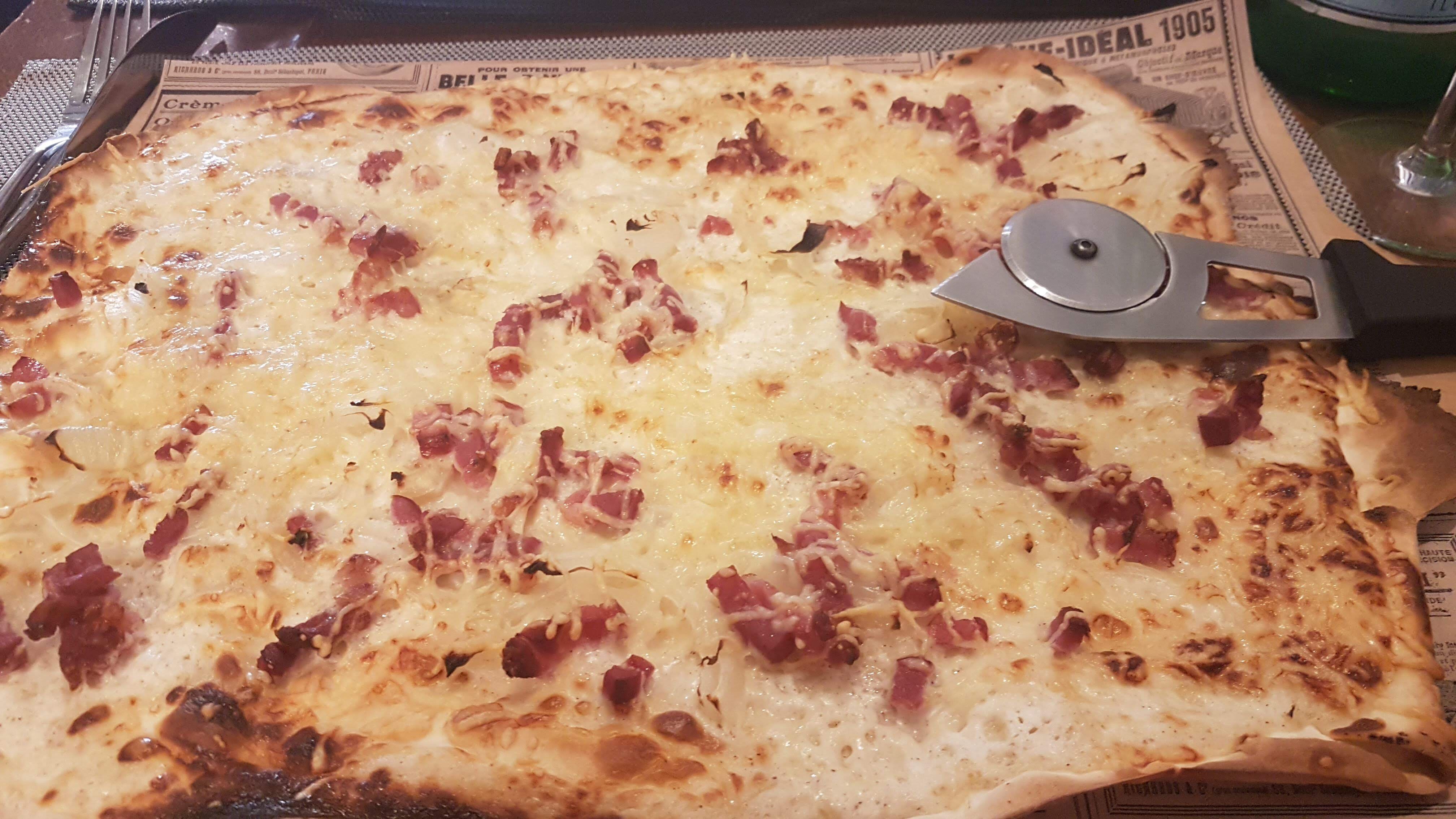 Tarte flambée très savoureuse et un hôte vraiment travailleur.