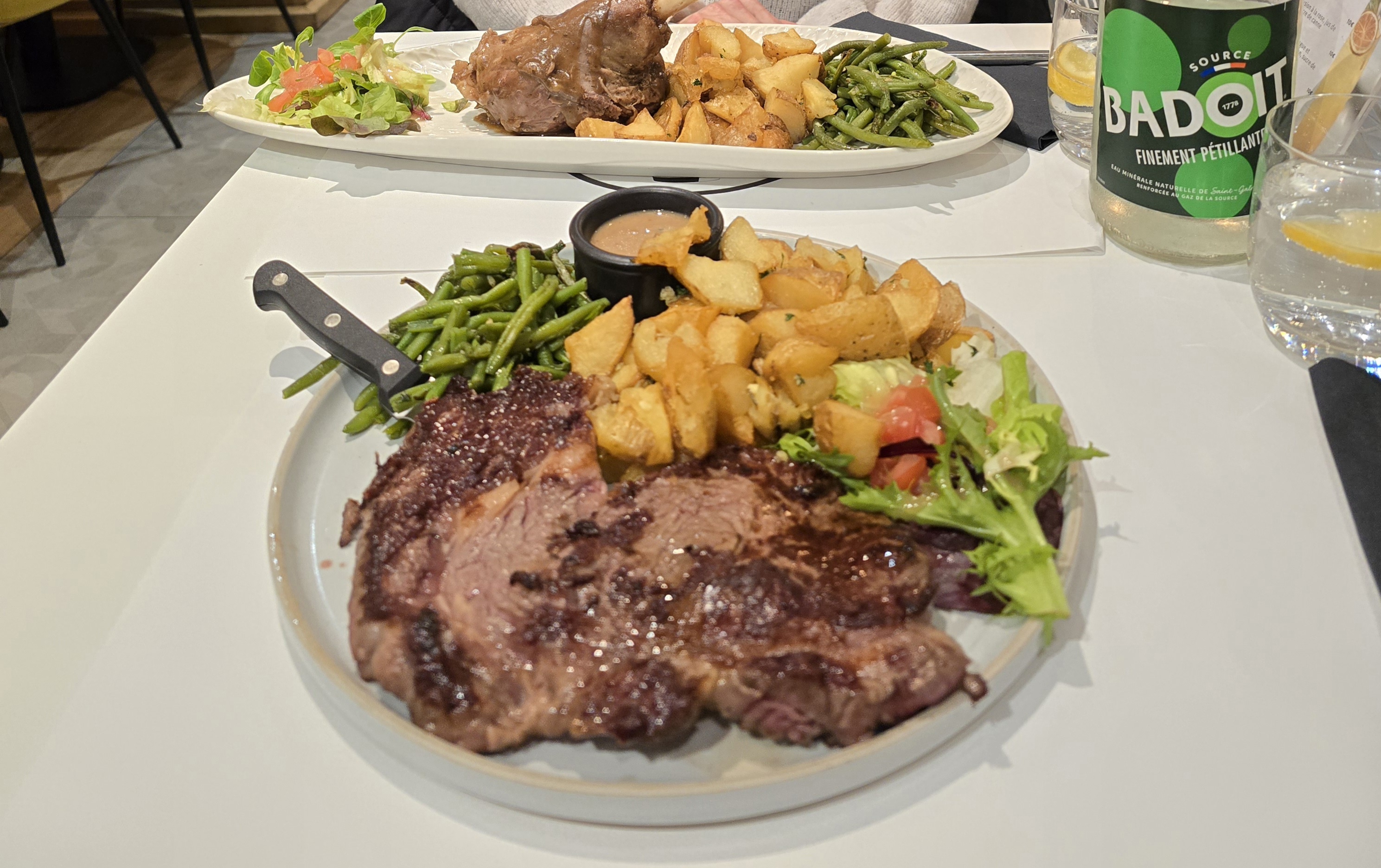 Meilleur repas à Paris : la soupe à l'oignon était très délicieuse en entrée, une grosse portion avec du fromage dedans et en accompagnement avec des croûtons. Je recommande vivement la côte de boeuf (tomahawk) une des meilleures assiettes de viande que j'ai mangé, une énorme portion avec des quartiers de frites ! si savoureux! Le canard aux champignons était également très spécial et délicieux ! Les assiettes de poulet étaient bonnes mais n'avaient aucune chance à côté des assiettes de côte de bœuf et de canard. Je reviendrai certainement dès ma visite à Paris…
