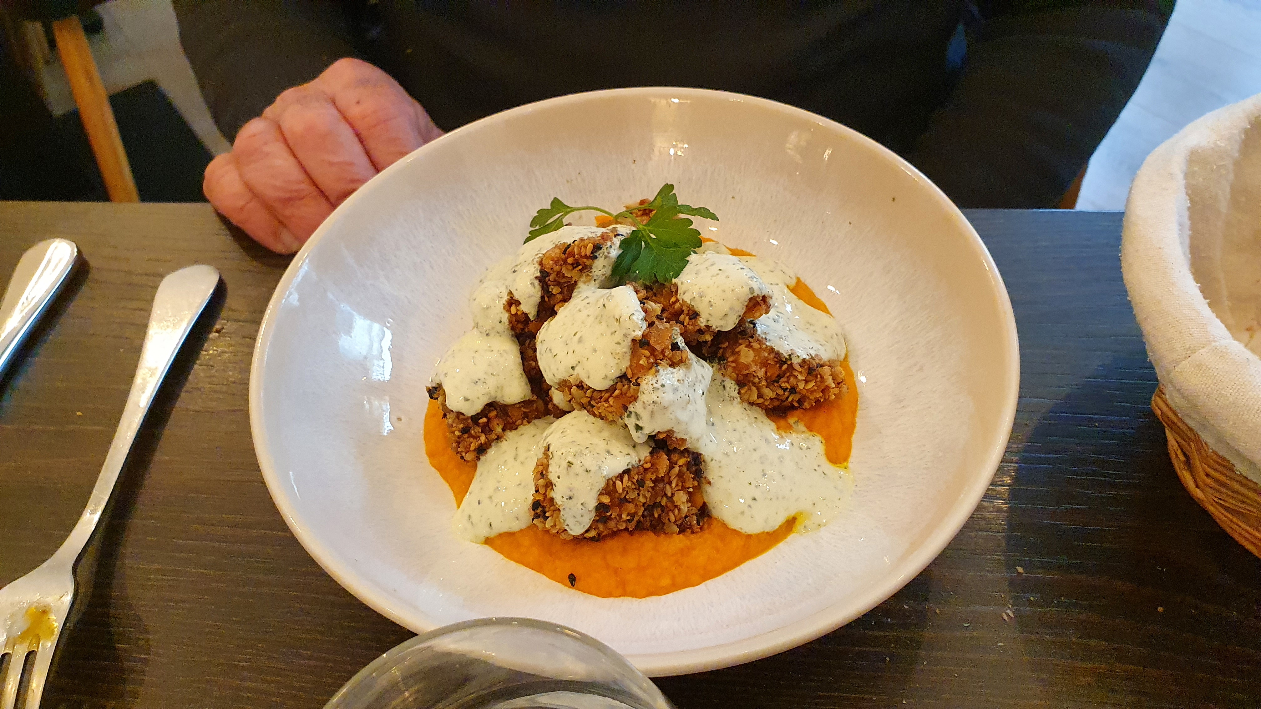 Très joli resto mais aux assiettes bien vides. J'ai pris le dos de lieu noir avec ses pancakes de légumes (18€), il fallait bien chercher les légumes et on voyait au travers des pancakes (y en avait 3). Le poisson n'était pas assaisonné et la sauce était uniquement une crème chaude... C'était bon, mais trop cher pour la quantité dans l'assiette, j'avais faim en sortant... Je comprends bien que les prix comprennent le service et c'est normal, payer 18€ pour une assiette ne me dérange pas, mais j'aurai aimé ressortir rassasiée. Le site n'était pas à jour, c'est bien compliqué pour choisir un peu à l'avance quand on vient de loin. Le service était très agréable et la déco chaleureuse.