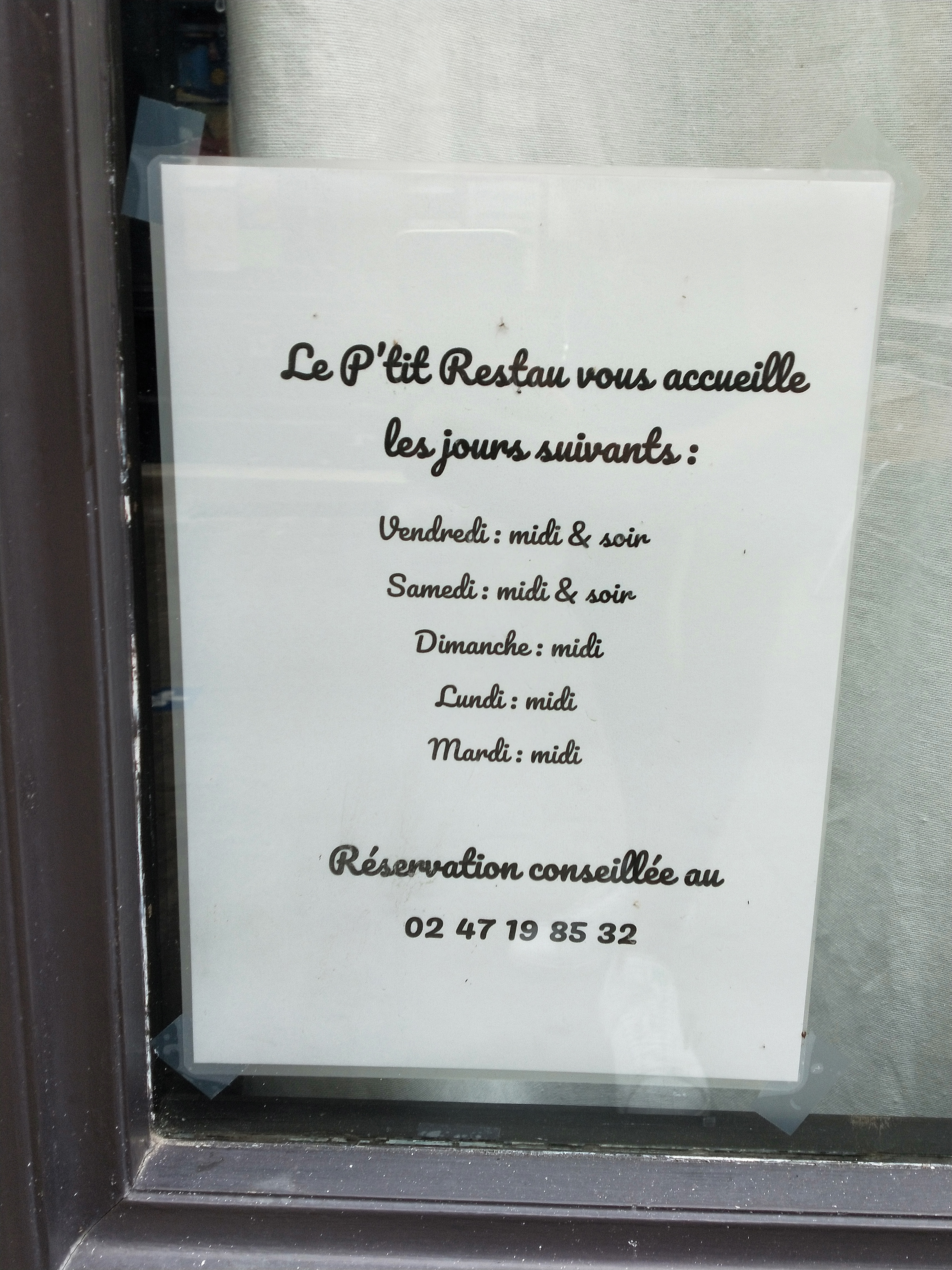 Je suis allé dîner au P'tit Restau samedi soir avec ma femme et ma fille. Nous avons passé une très bonne soirée. L'accueil, le service et le repas ont été sans faute. Nous ne sommes jamais déçus. La nouvelle décoration est sympa et de très bon goût. Mention particulière à notre serveur qui est toujours aussi parfait. Nous y retournerons avec plaisir dès que possible. Très bonne adresse à Loches. A conseiller. Bravo!