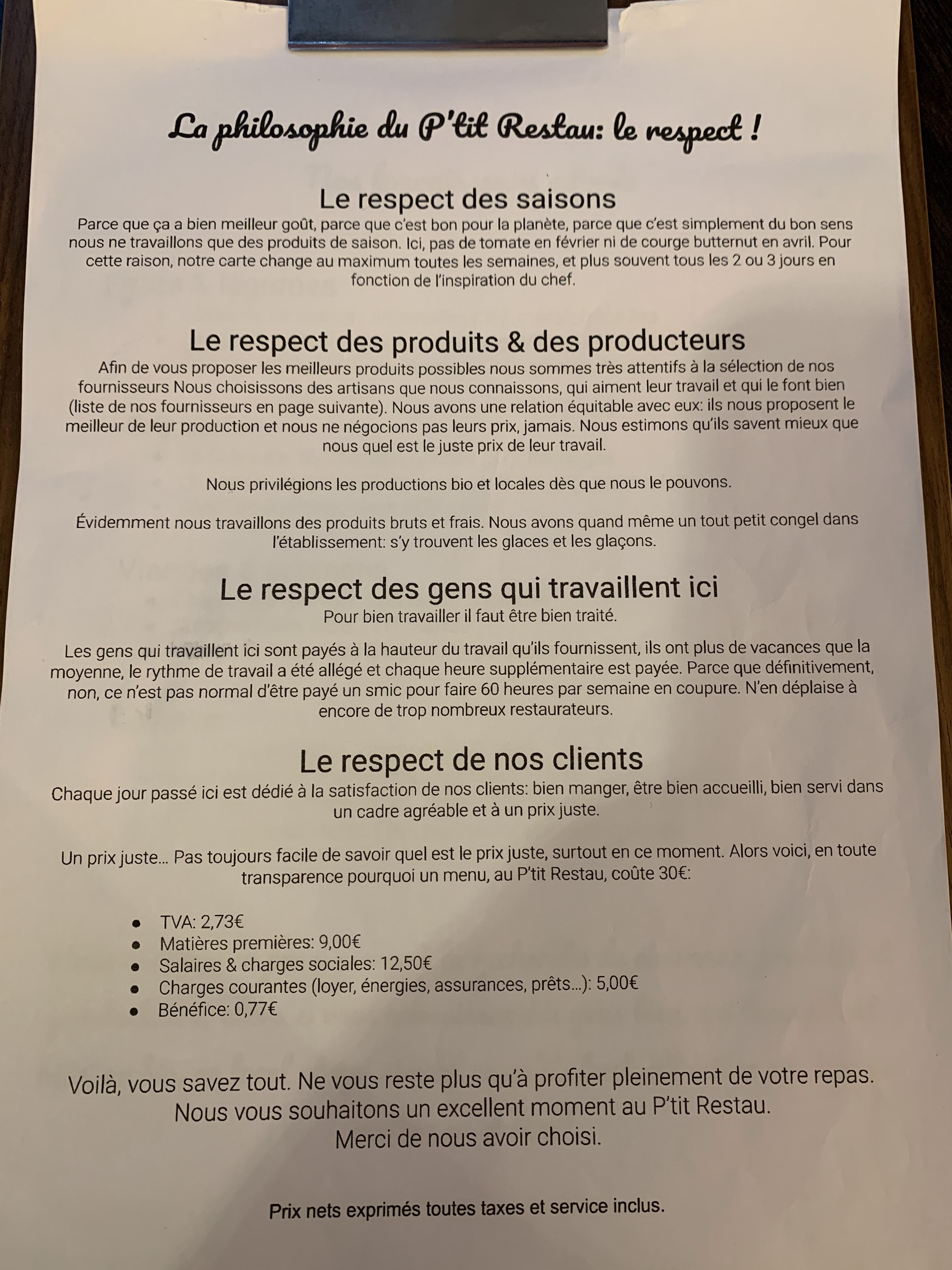 Super restaurant ! Accueil très chaleureux, accueillant et souriant. Le service est parfait et le petit texte sur l’histoire et les convictions du p’tit restau est vraiment une bonne idée . La cuisine est succulente avec des plats de saisons et des produits frais. Le tout avec des prix très raisonnable ! Encore merci à vous et bravo