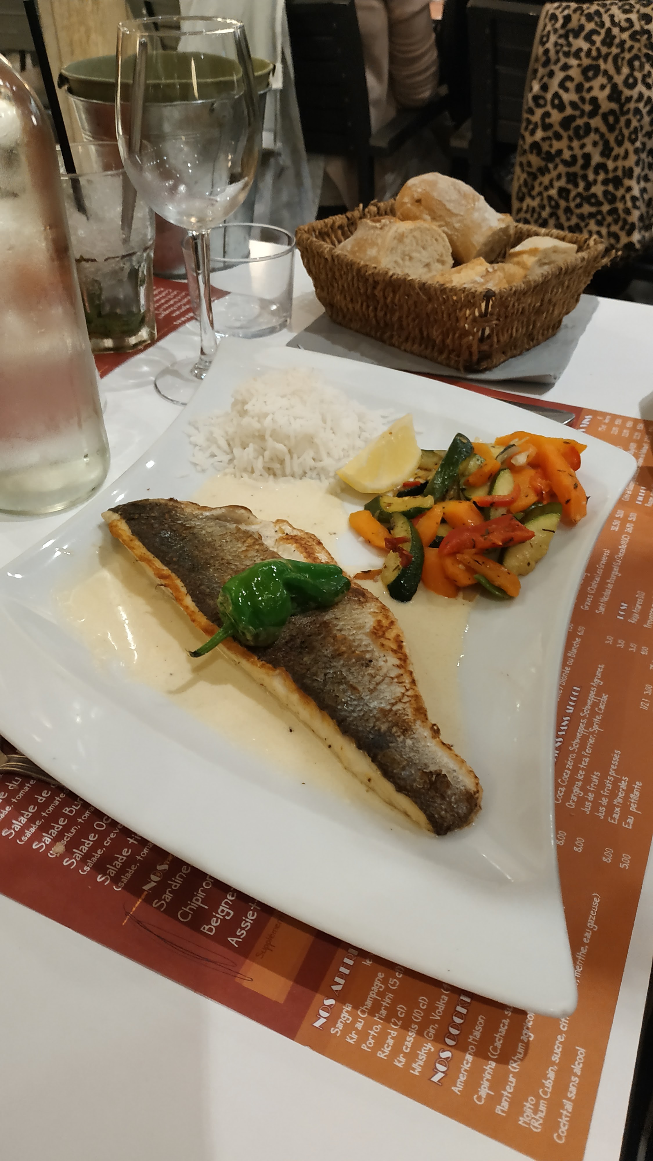 Personnel très agréable et serviable. Dont un serveur qui vous donne envie de choisir tous les plats de la carte tellement il raconte bien ce qu'il y a dans les plats!!! Note spéciale pour les Chipirons à partager ! Une bonne assiette qui suffit pour 4 a 5 personnes en apéro ! Le porto est servi sans glacon (cest assez rare pour être souligné ). Les poissons sont copieux et délicieux. Petit bémol pour la salade de chèvre qui est très simple et peu garnie. Un plat végé serait bienvenu sur la carte 😉 Les prix sont très corrects. Nous y reviendrons!