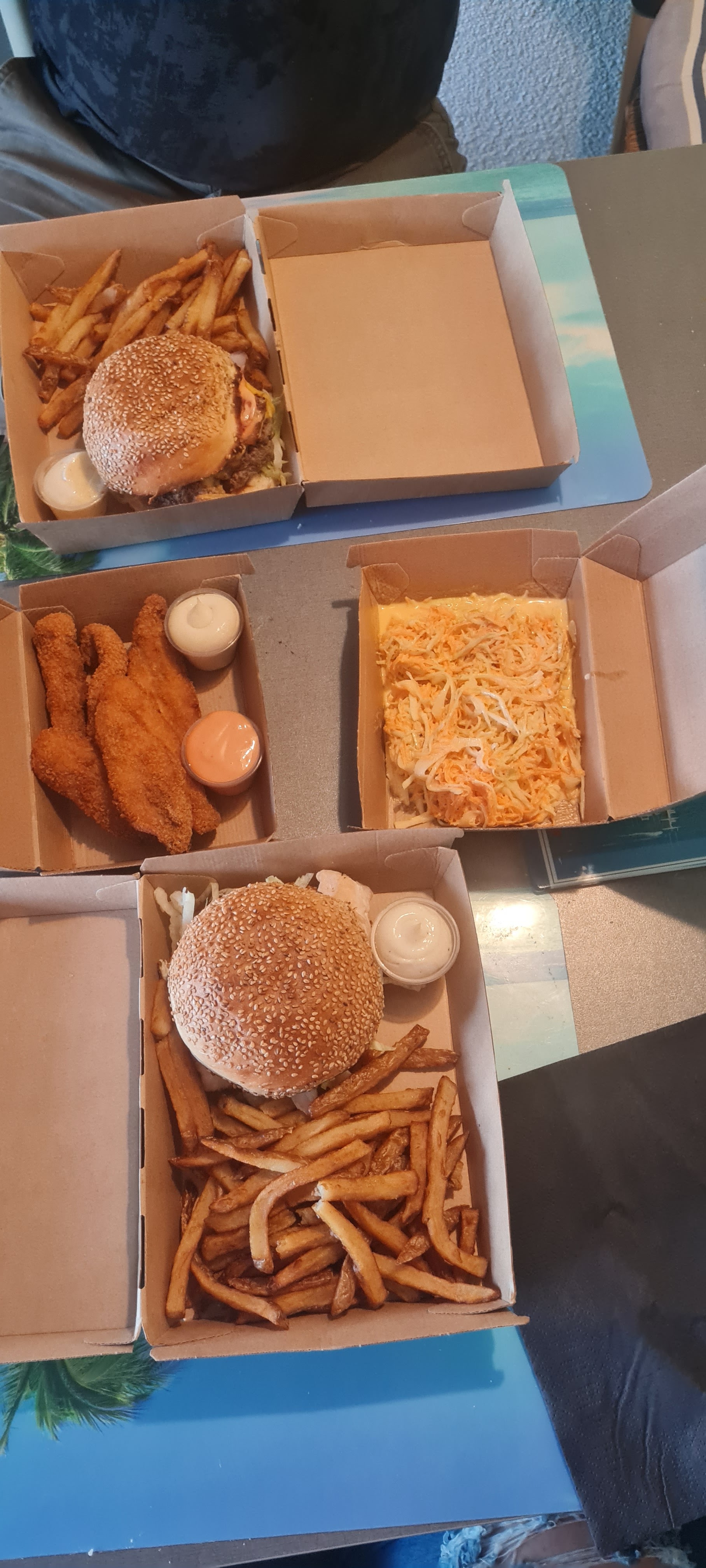 Excellent 👍👍👍 J'y ai commandé 3 burgers frites à emporter. Les burgers étaient savoureux et généreux. La viande était parfaitement cuite et la sauce au top. Quant aux frites, merci !!! Enfin des vraies frites maison qu'on mange avec plaisir et qui ne finissent pas à la poubelle. Le tout était servi chaud et l'horaire de la commande a été parfaitement respecté. Merci à vous et au plaisr de se revoir 😉