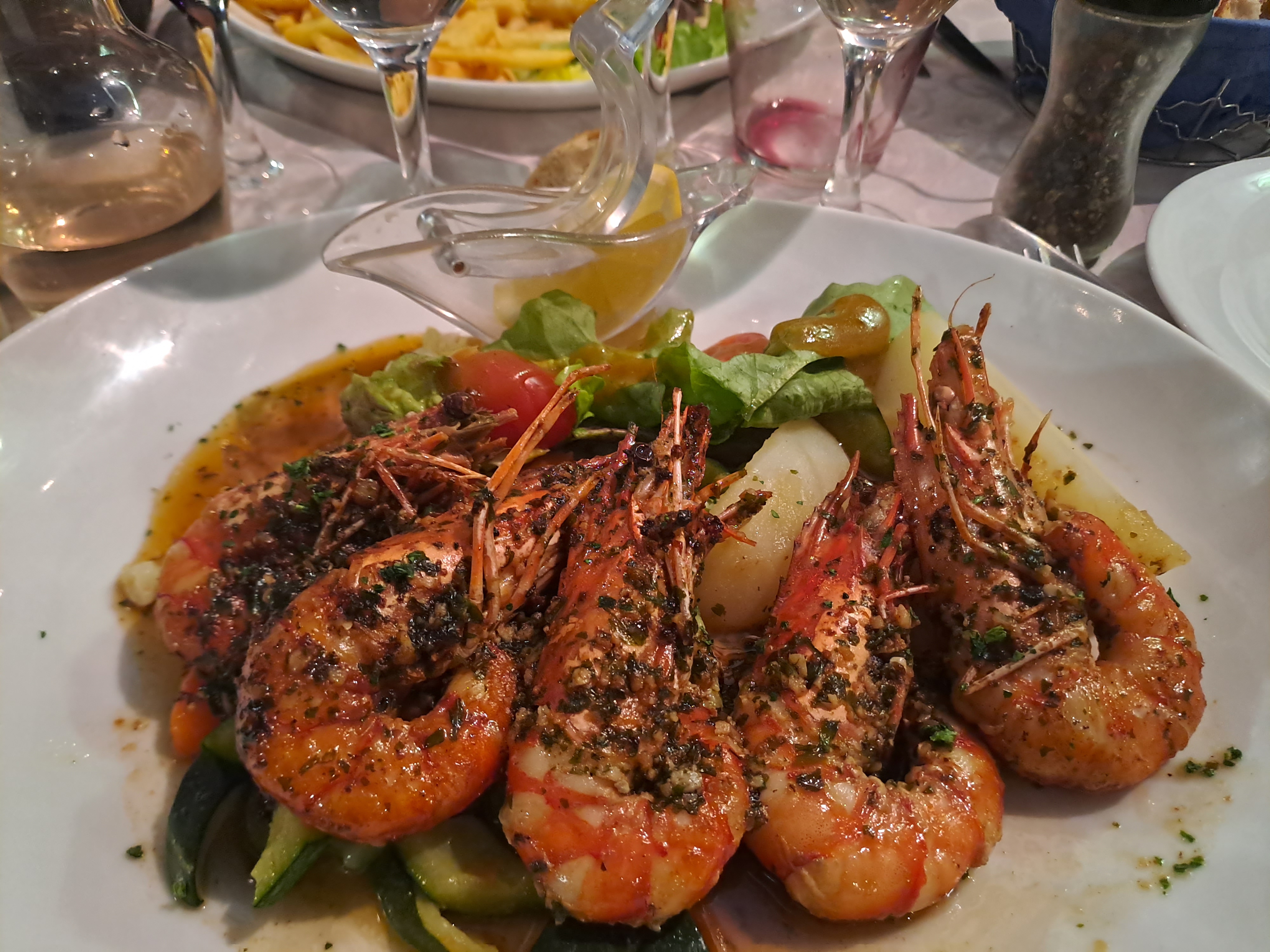 Service très souriant.Cadre sympathique. Ici on sait faire de la cuisine avec des produits frais. Nous avons pris une sole et des gambas délicieuses. De plus on m a proposé de préparer la sole et les gambas étaient décortiquées... Délicieux dessert frais.