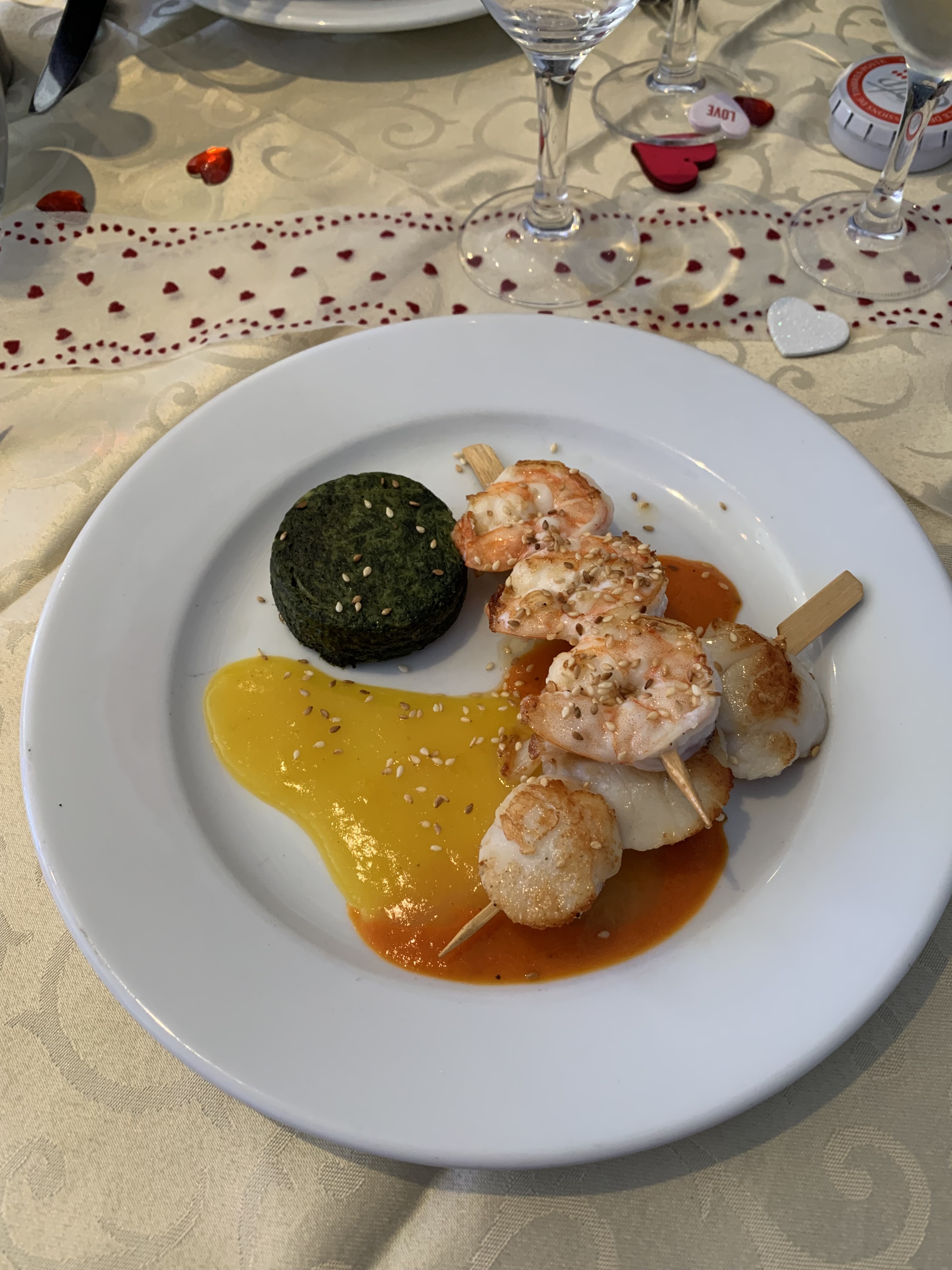 Plat prncipal pas du tout à la hauteur fu service, qui est adorable. Entree pas mal. dessert bon,