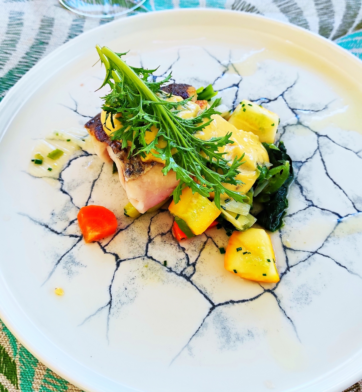 Repas de midi menu unique vendredi c est poisson et quelle explosion de saveur... des herbes des fleurs des légumes de saison des cuissons parfaites un service impeccable A refaire un soir pour les plats de la carte