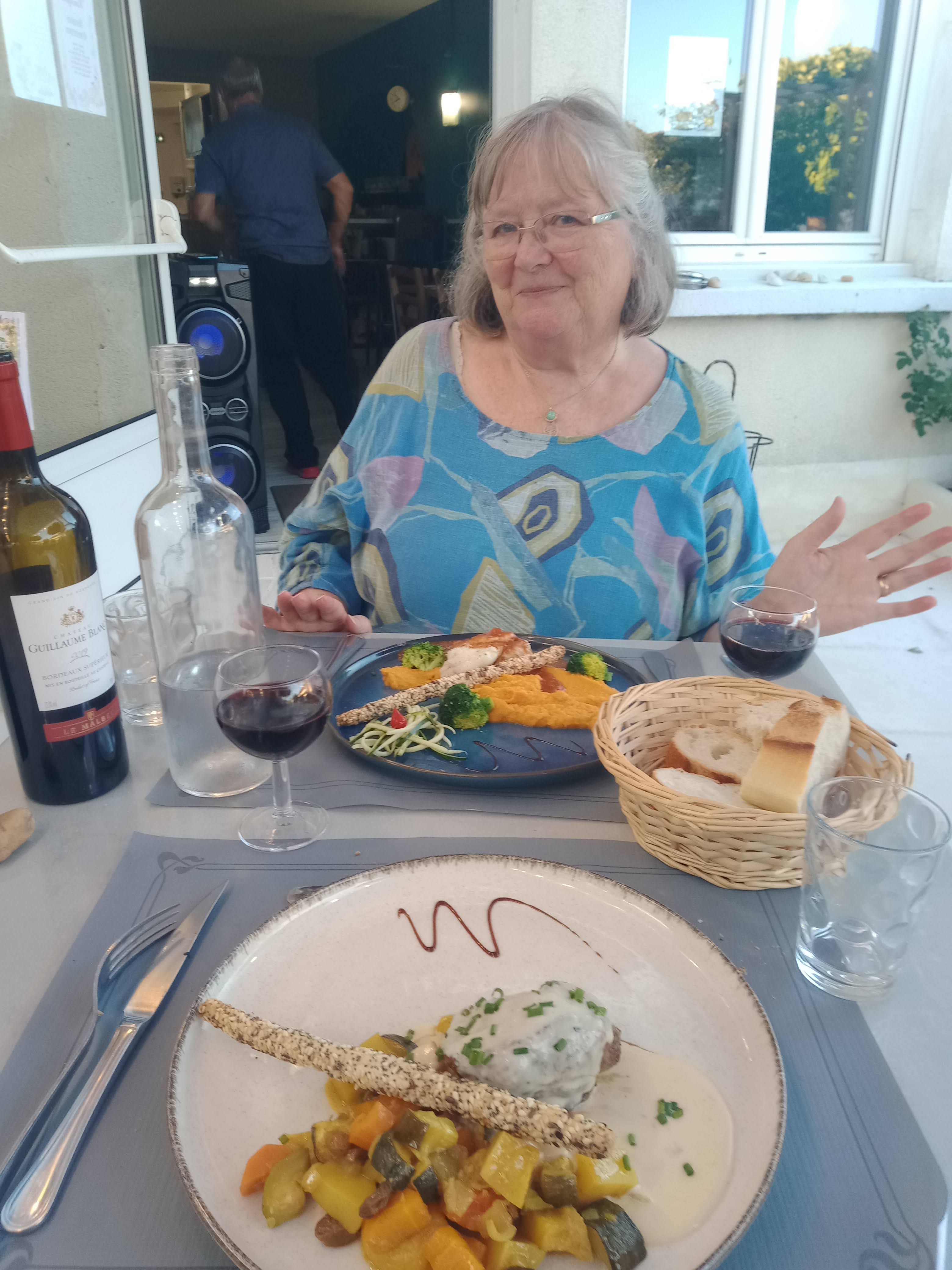 Nous avons passé un très bon repas de 3 plats avec une carafe de café au vin rouge et du cognac, le tout pour 42 €, superbe !