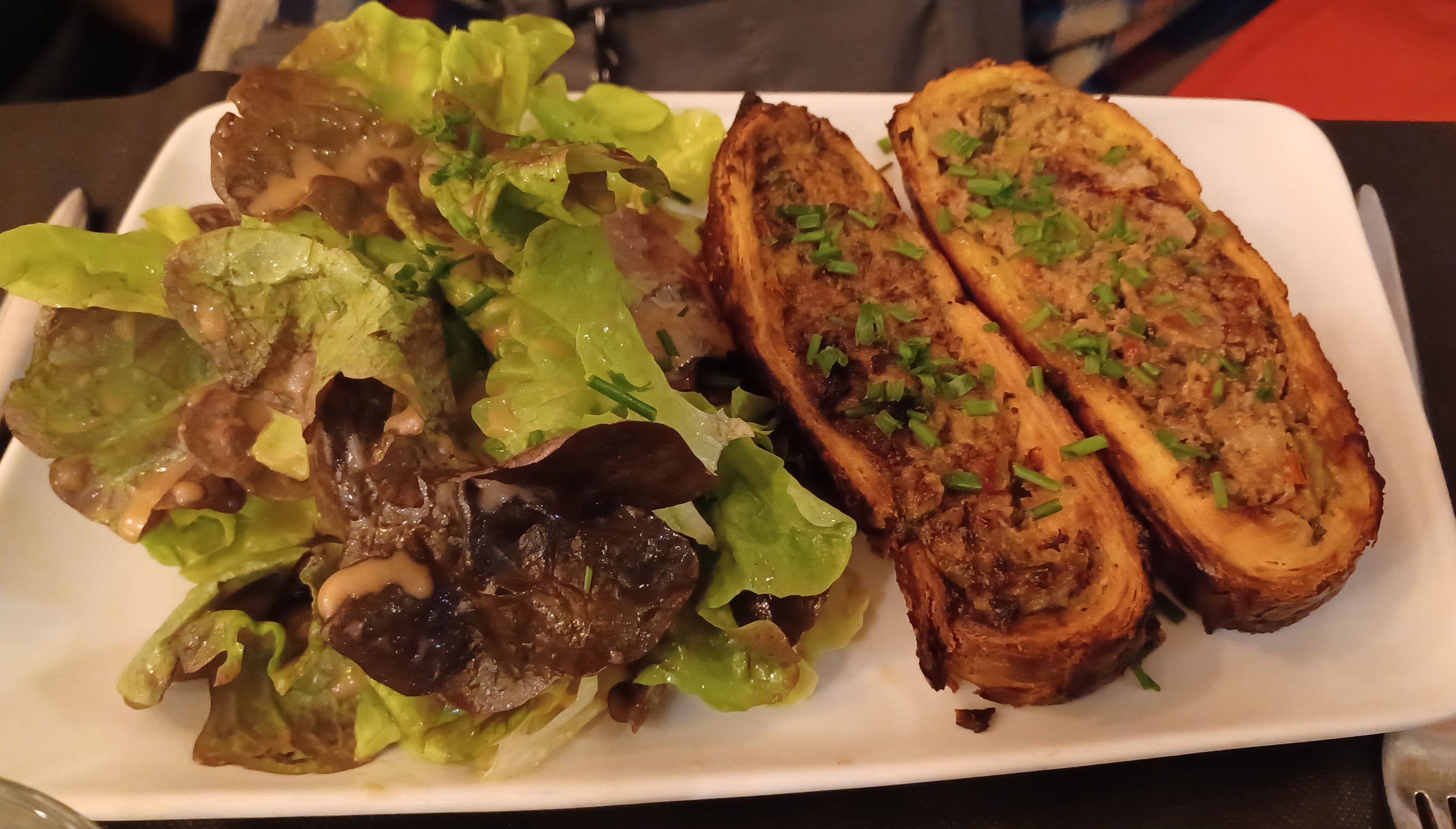 Accueil sympathique, terrasse au calme. Le Strudel à la viande était généreux et délicieux. À recommander