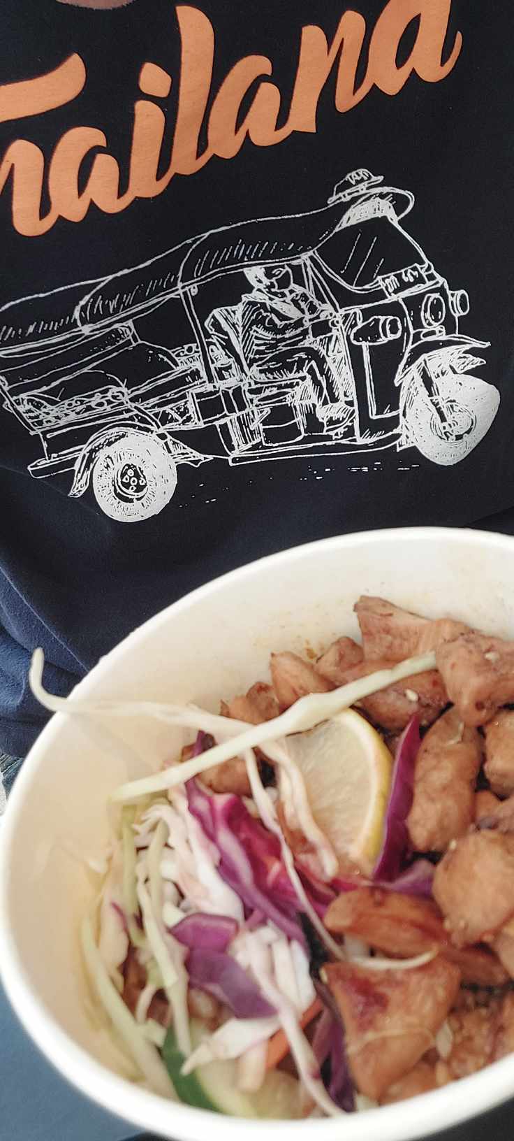Agréablement surpris, le plat sur place est très bon chaque aliment mis en bouche dégage sa saveur et on sent que les légumes sont frais je recommande vivement j'ai pris un pad thaï poulet croustillant et un riz poulet mariné ! Le seul point négatif que je pourrais donner c'est la quantité du riz ou des nouilles plate,( la viande sa quantité est très raisonnable par contre) diminuer légèrement les crudités et ça serait parfait.