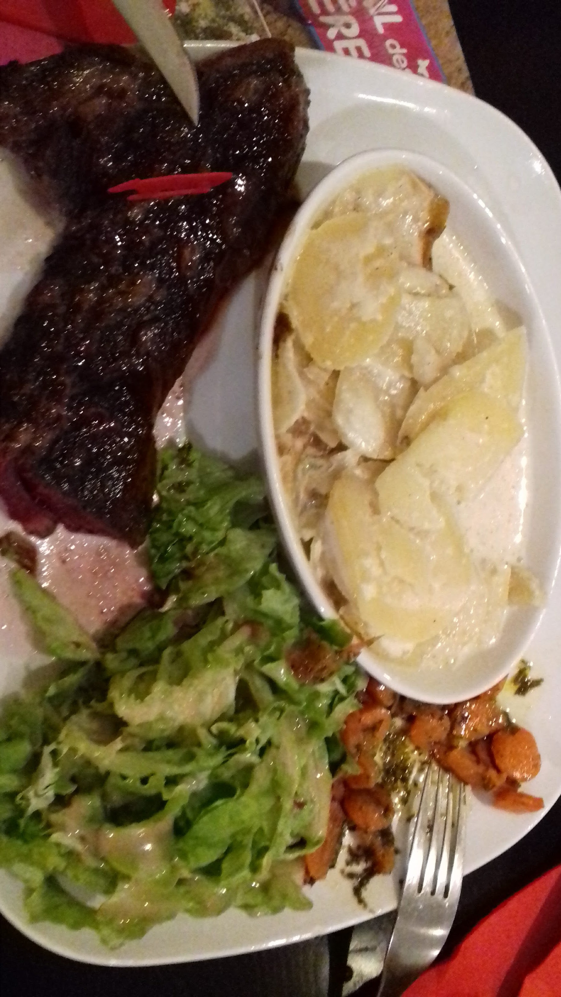 Si tu aimes la viande, saignante bien sûr, c'est the place to be!!! Côte de Boeuf pour 2, une tuerie....Accompagnée d'un bon petit vin avec modération car il faut redescendre dans la vallée :)