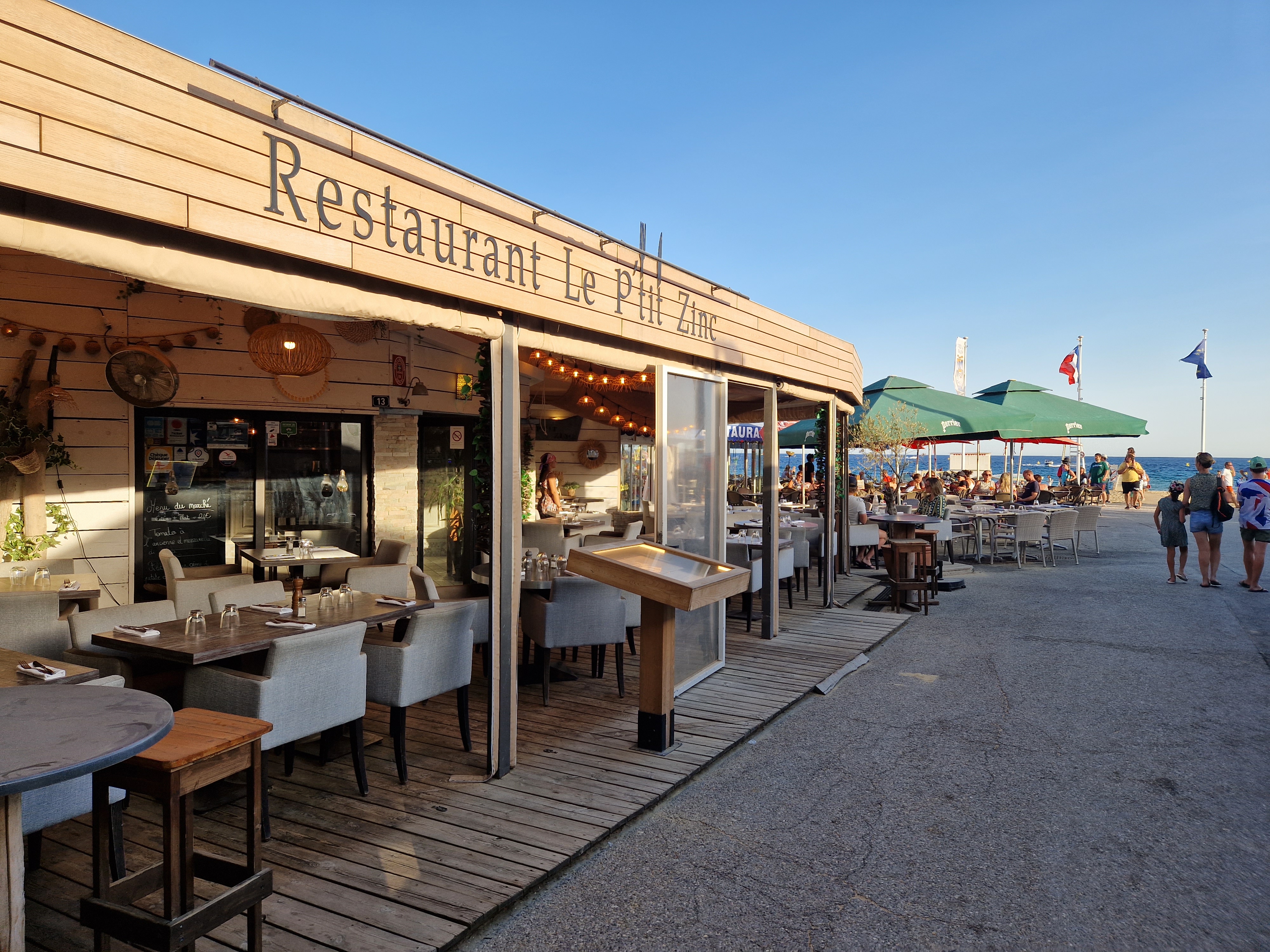 Très agréable surprise, restaurant en bord de plage. Ambiance chaleureuse le soir et les sièges sont confortables. Les plats sont généreux et bons. J'ai pris les moules marinières, de bons calibres et goûteuses. Le burger du ptit zinc, mon fils l'a trouvé excellent et la viande de qualité. Le service est rapide et personnel aux petits soins.