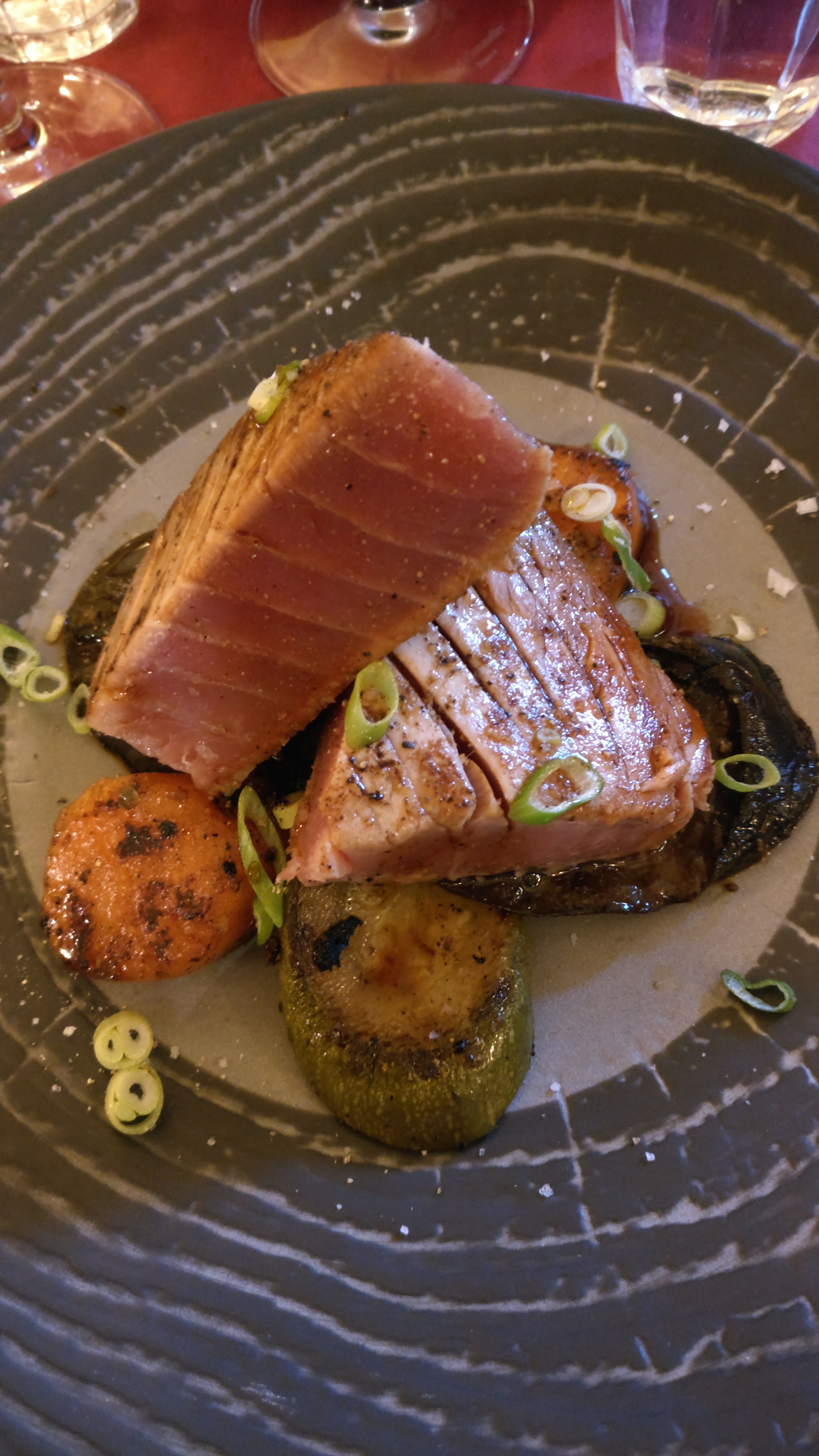 Accueil très chaleureux et convivial. Et un repas excellent. Nous nous sommes régalés: - Tournedos de thon rossini - Parmentier d'agneau - Tarte au citron meringuée Très bons conseils sur l'association des vins avec les plats. Nous recommandons les yeux fermés.