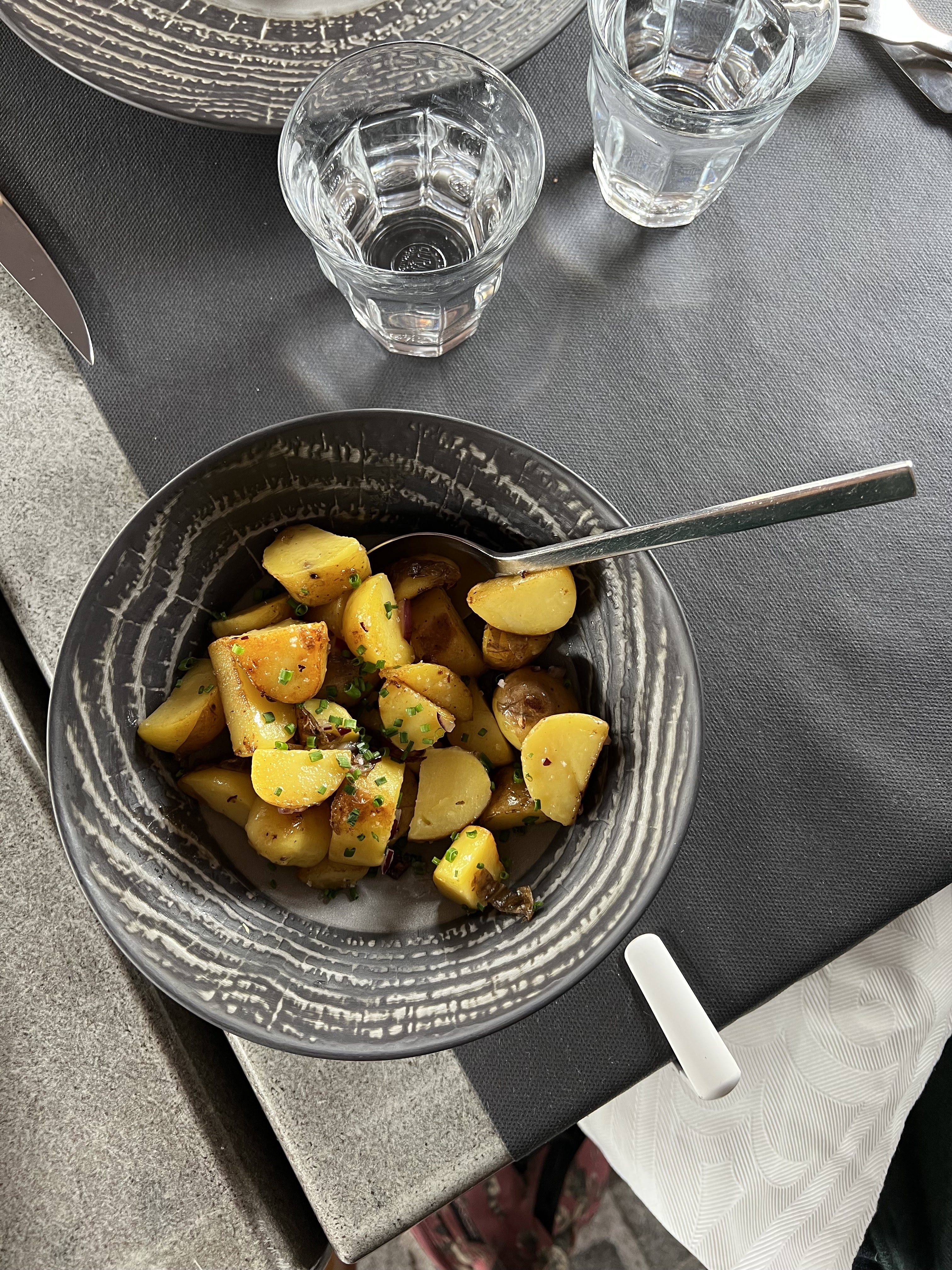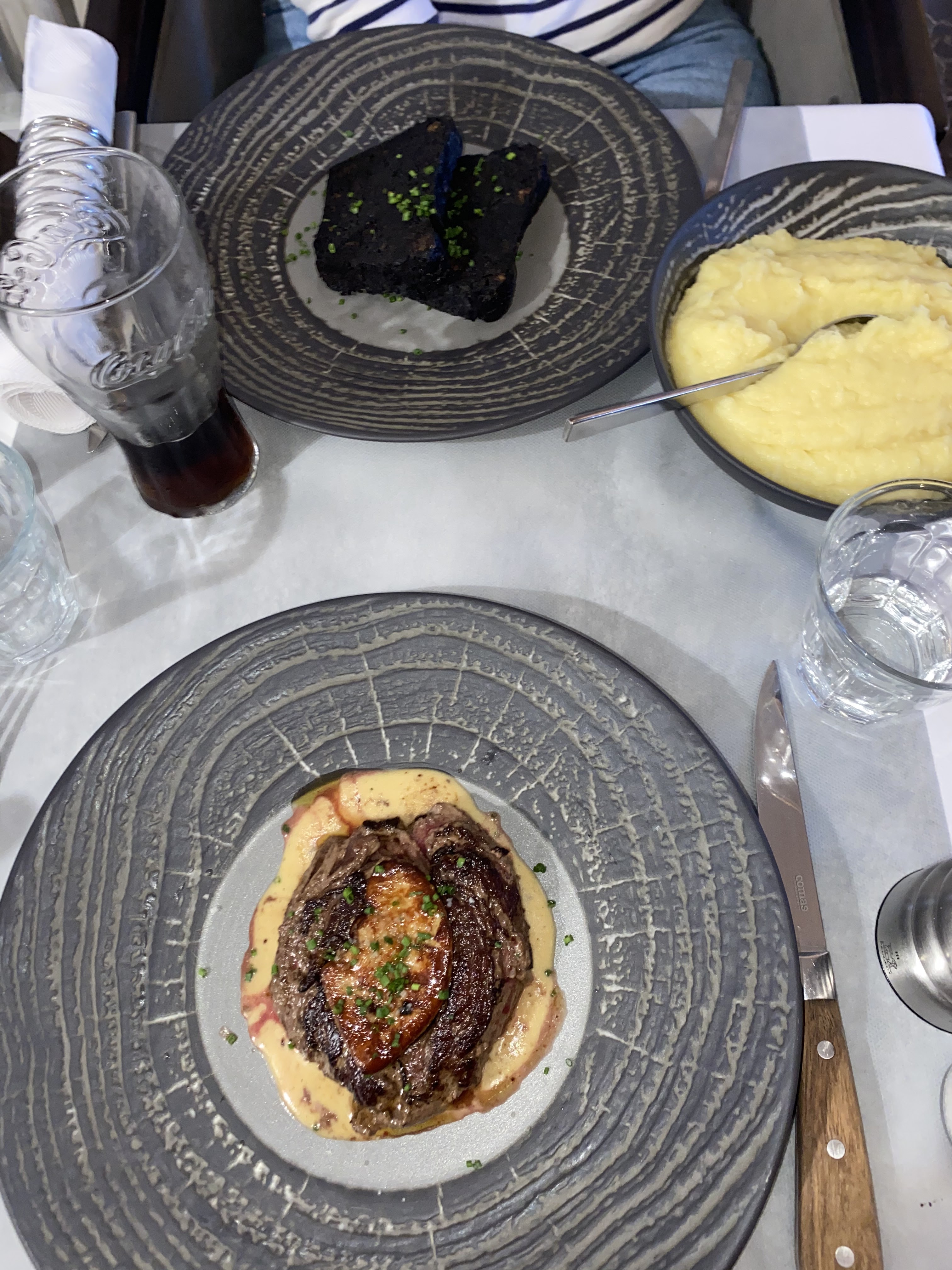 Fois gras à 19.50€ servi très mou. Table à côté de nous, la personne avait bcp bcp de mal à couper sa viande rouge, après une dixième de réclamation, le serveur lui a répondu qu’il ne savait pas se servir du plat du couteau. On a préféré écouter le repas sans dessert.