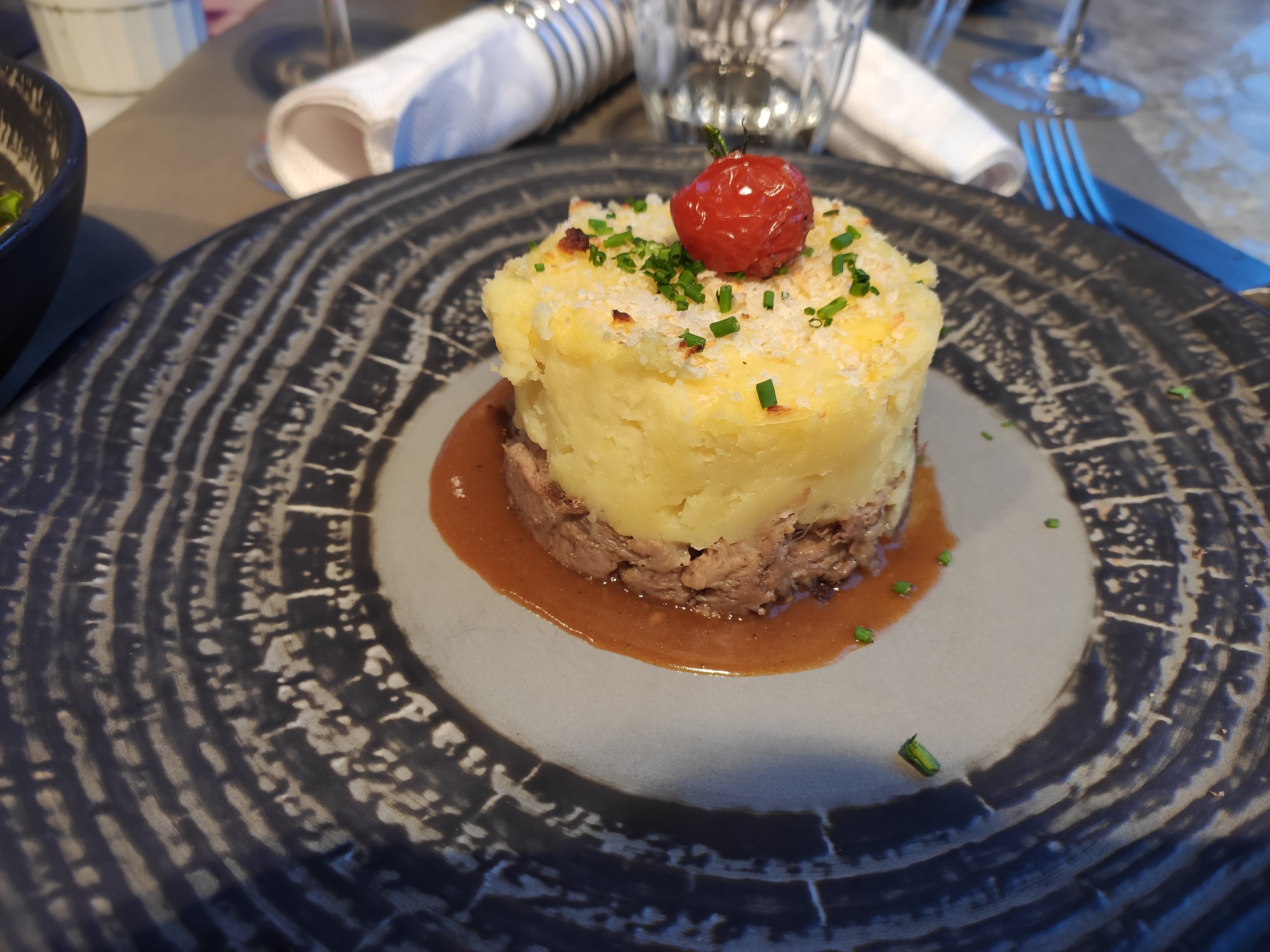 Très bon restaurant ! Les papilles ne seront que ravies au sein de cet établissement qui saura vous séduire grâce à la carte qui propose notamment grâce à son Parmentier de canard. Premièrement en bouchée de pré repas nous avons eu le droit à un velouté exquis non pas parce qu’il fut offert mais bien car il mérite sa place sur la carte. Le service est impeccable, rapide, efficace, très pro. Je vous recommande vivement cette expérience unique.
