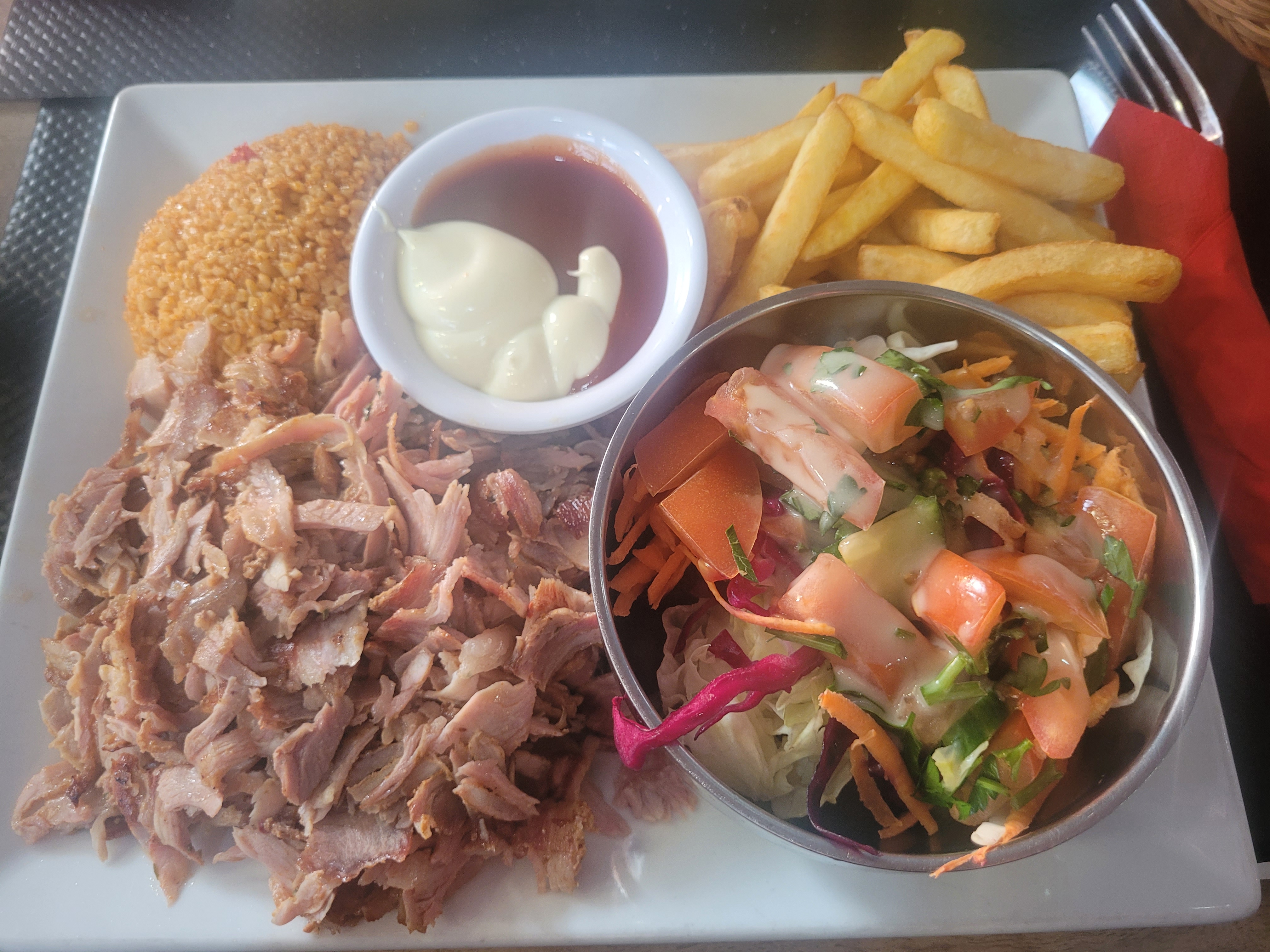 J'ai pris un Kebab en assiette, super bon, servi avec du pain traditionnel tout juste sorti du four, quantité généreuse, service rapide... Bref rien à dire ! J'y reviendrai 😊