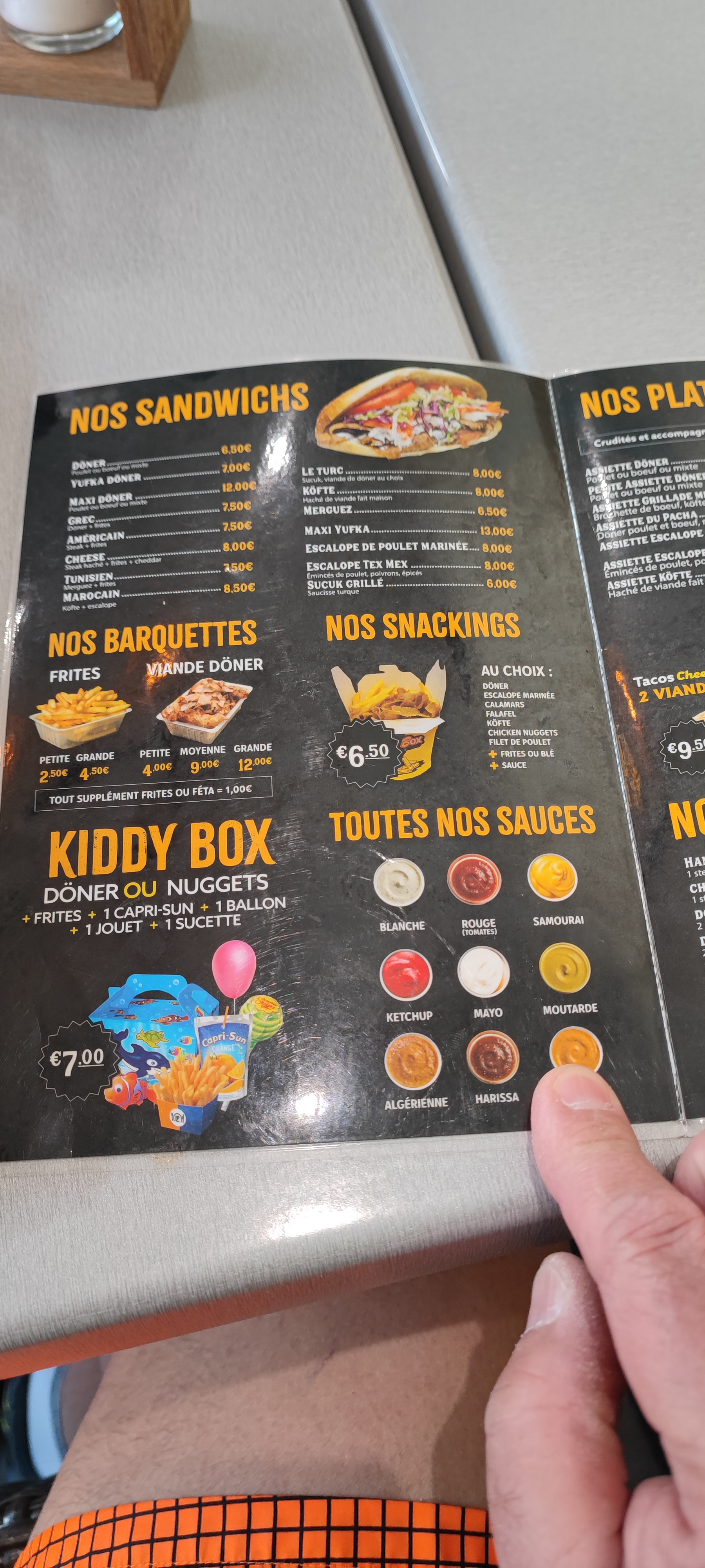 Très déçue. Accueil vraiment dérangeant, avec une femme à l'accent des quartiers qui parle mal au jeune cuisto devant tout le monde. Frites qui se résume à de l'huile, même pas de pomme de terre à l'interieur. Et le dōner.....hyper gras, moitié vide d'ingrédients et pain sec. Le changement de propriétaire se ressent clairement, quel dommage, c'était bon avant. Nous n'y retournerons plus !