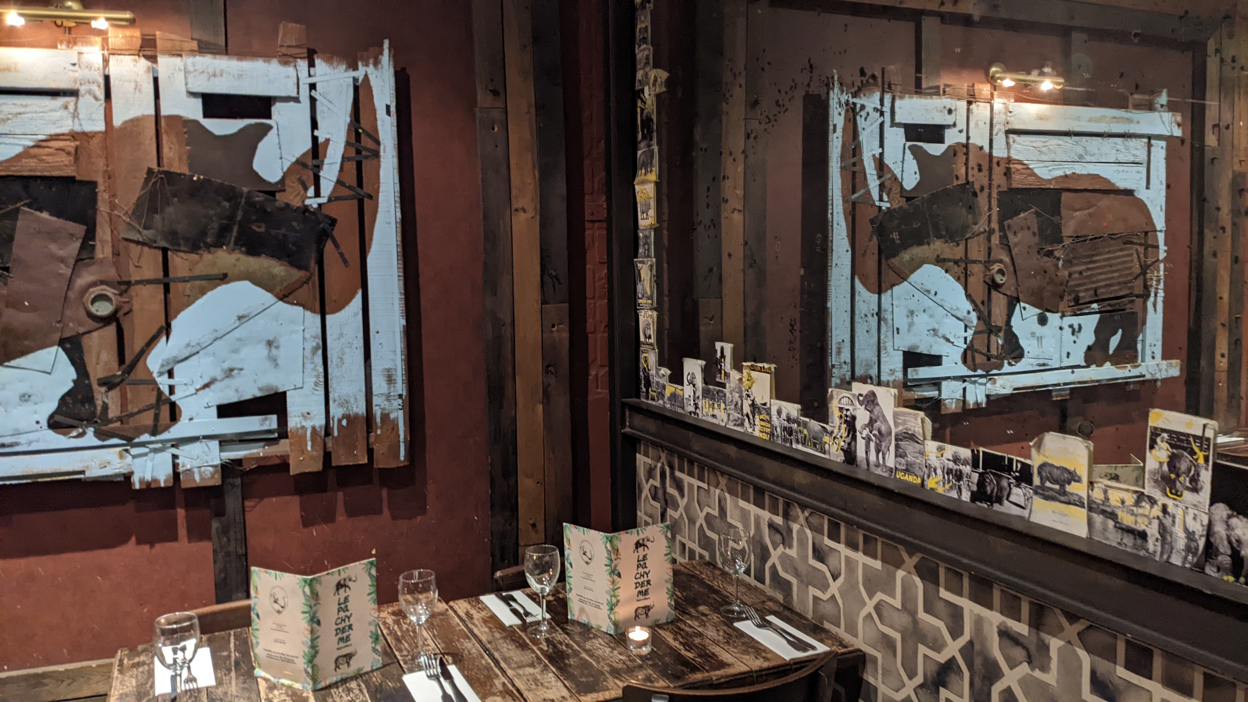 Ambiance sympa, accueil chaleureux. Décor avec tapis et des éléphants. On a bien aimé (un verre pris et vraiment la serveuse a été trop sympa).