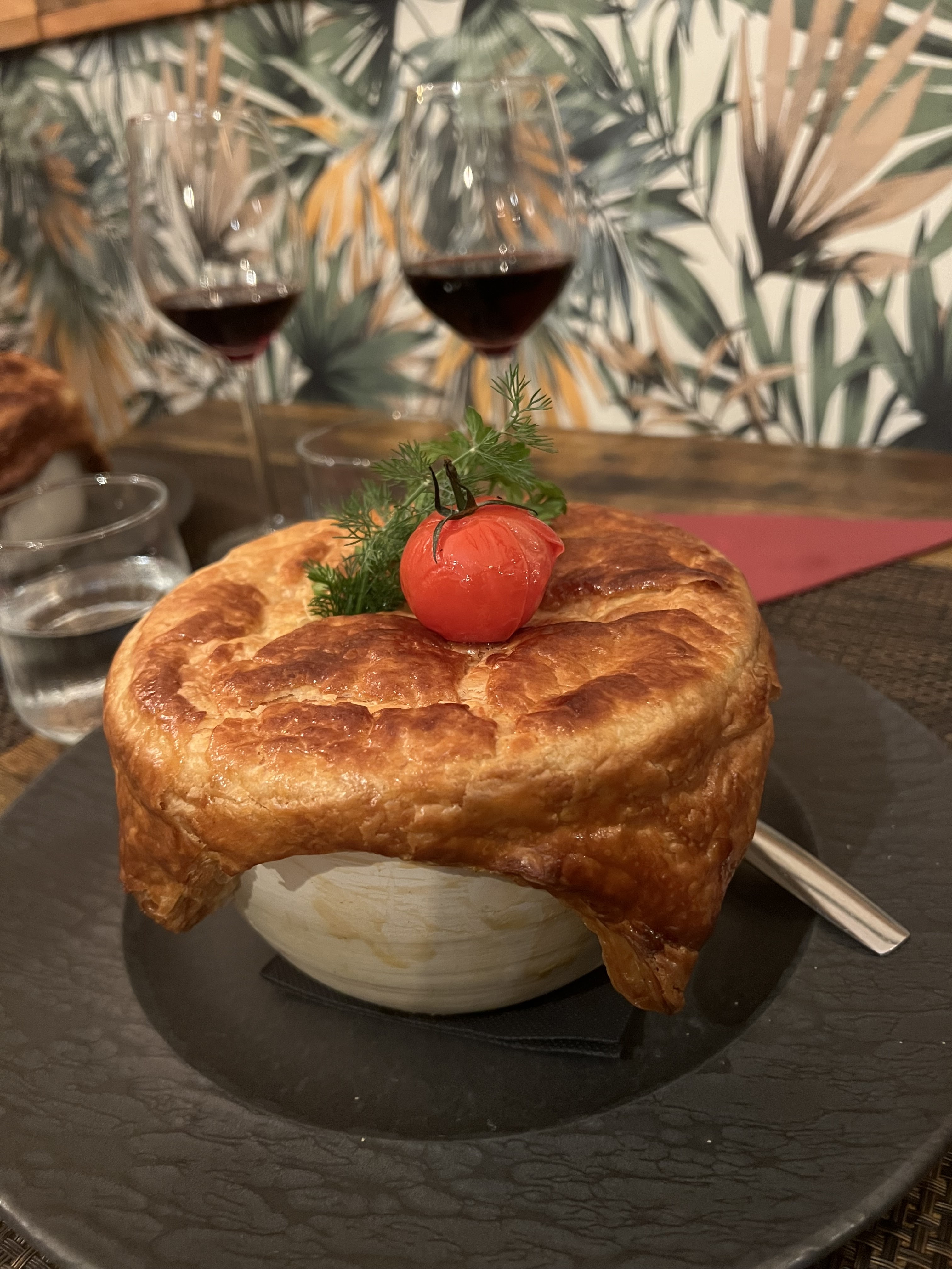 Le prix du menu de 29 euros pour une entrée et un plat, n'est pas justifié par rapport aux plats proposés. Bon mais sans plus. Nous avons pris en entrée, coquilles st-Jacques accompagnées de son velouté de Butternut à la truffe et en plat: la marmite du pêcheur, gros bol recouvert de pâte feuilletée avec pas grand chose dedans : 2 petits morceaux de poisson avec une petite patate avec des lamelles de légumes et une soupe de poisson fadasse et diluée.Très moyen. Nous avons été déçu. Nous n'avons pas osé le dire de visu, aux vues des réponses données aux commentaires laissés dans les avis. C'est plutôt virulent, inconvenant et inadmissible. Au revoir et au plaisir de ne plus.......