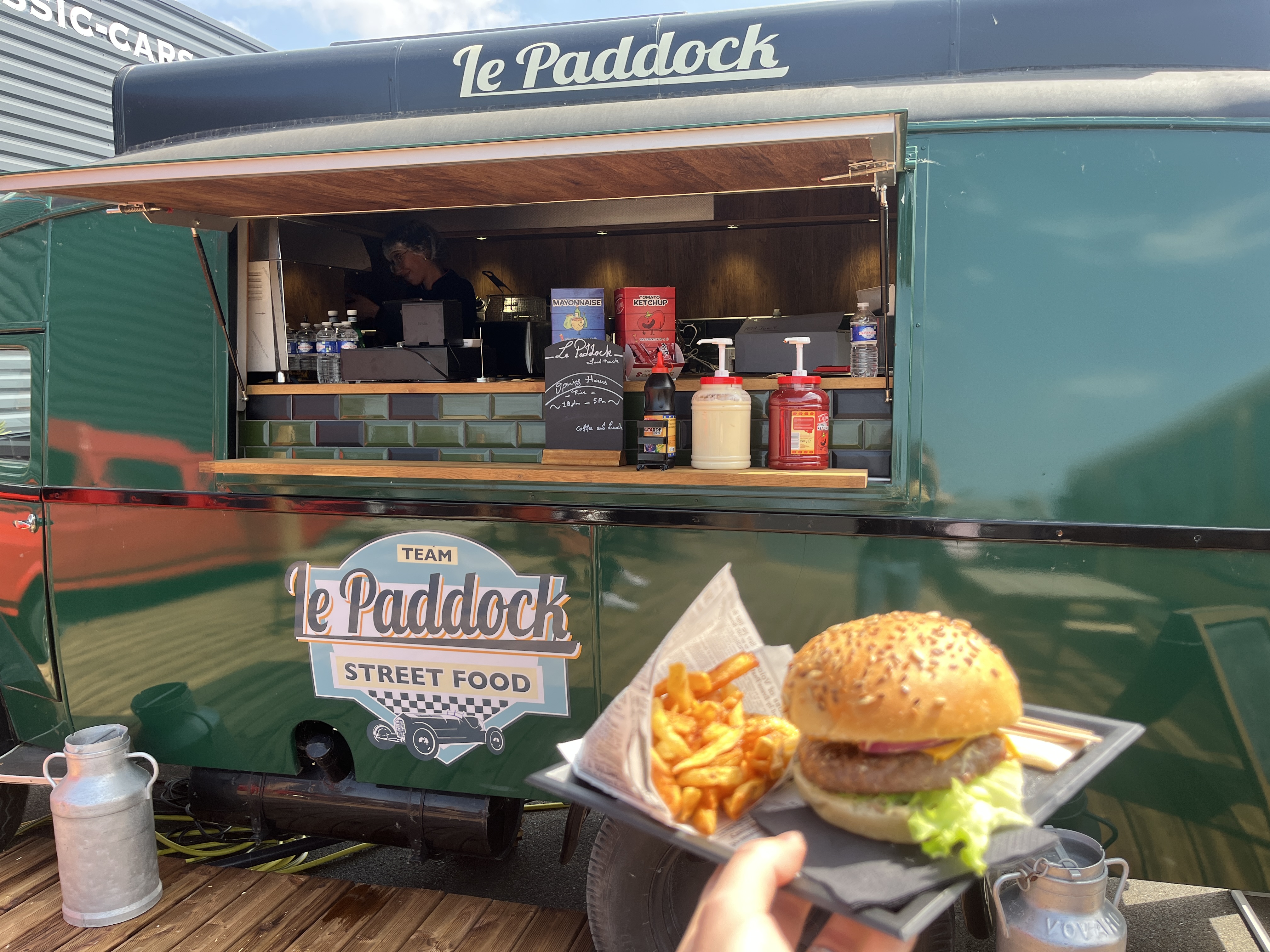 Voici un endroit atypique où l’on peut déguster un très bon burger avec des frites fraîches, assis dans un school bus Américain et cerise sur le burger, on peut voir plus de 150 voitures de collection chez Paul’s Classic Cars. Vous n’êtes pas à l’abri de commencer par un burgers frites, et craquer pour une voiture de collection. Merci à fadwa pour sa gentillesse et la qualité de sa cuisine.