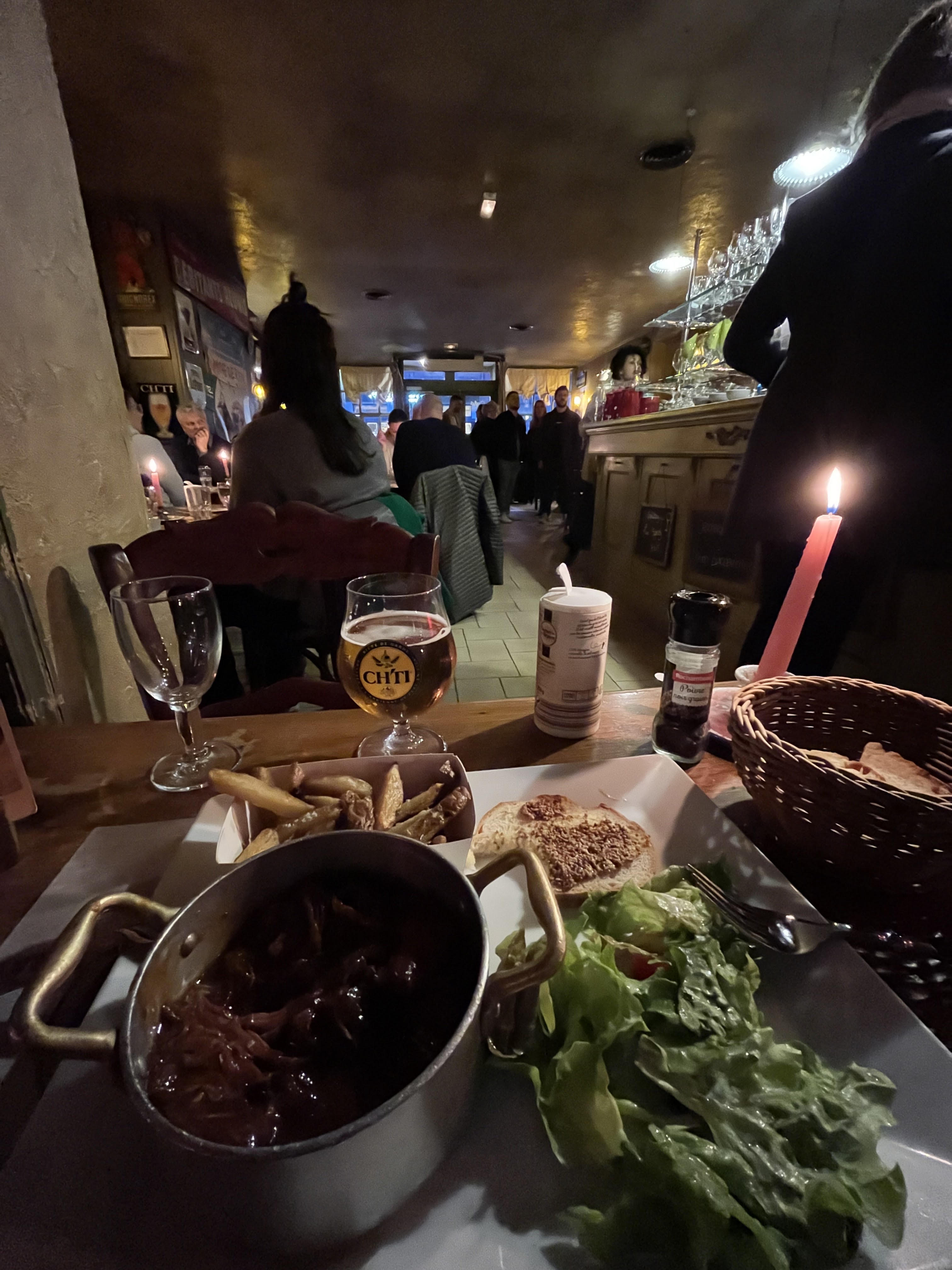 Un estaminet régional avec beaucoup de cachet, j'aime particulièrement la décoration qui est ancienne et authentique. Le cadre est intimiste et tamisé, avec un repas aux chandelles. Le patron nous a accueilli très chaleureusement, l'équipe est souriante et sympathique. Les plats sont savoureux et surtout très copieux, nous avons été bien servis.