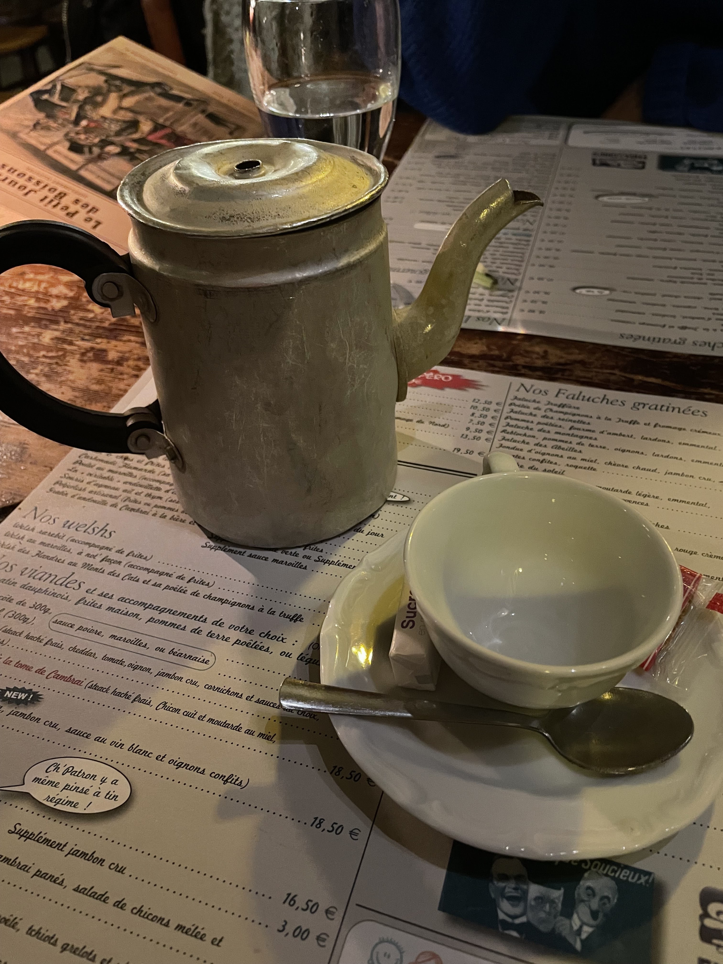 Un super endroit! Un restaurateur de Cambrai nous l’avait conseillé et il avait raison. Tout y est! Une carte abordable avec des produits frais. Un cadre façon estaminet avec une pointe de ringardise charmante.. On a adoré le café servi dans la vielle cafetière émaillée comme chez mémé ❤️