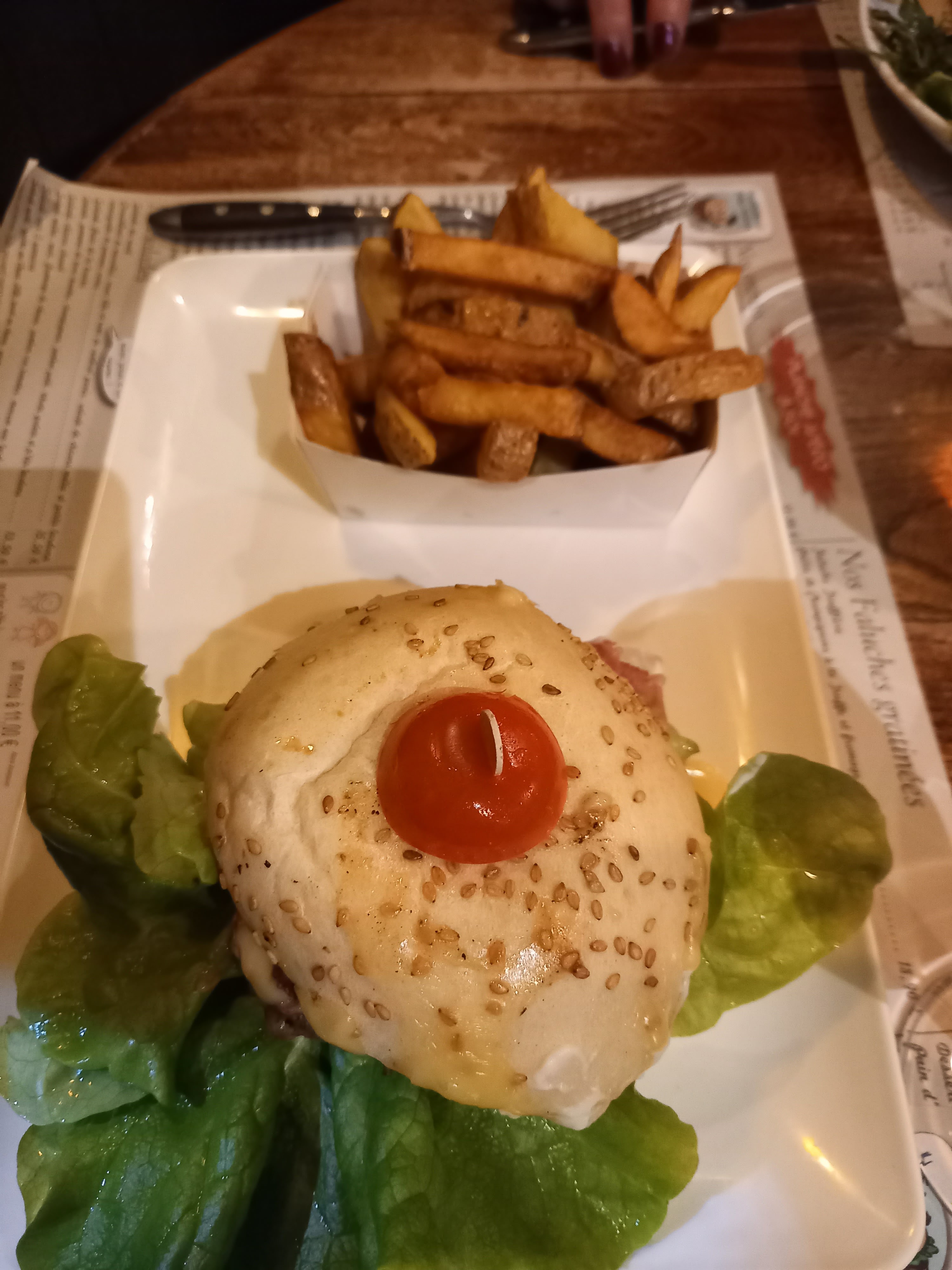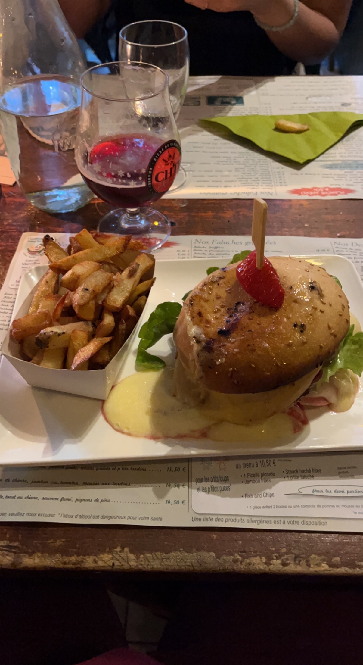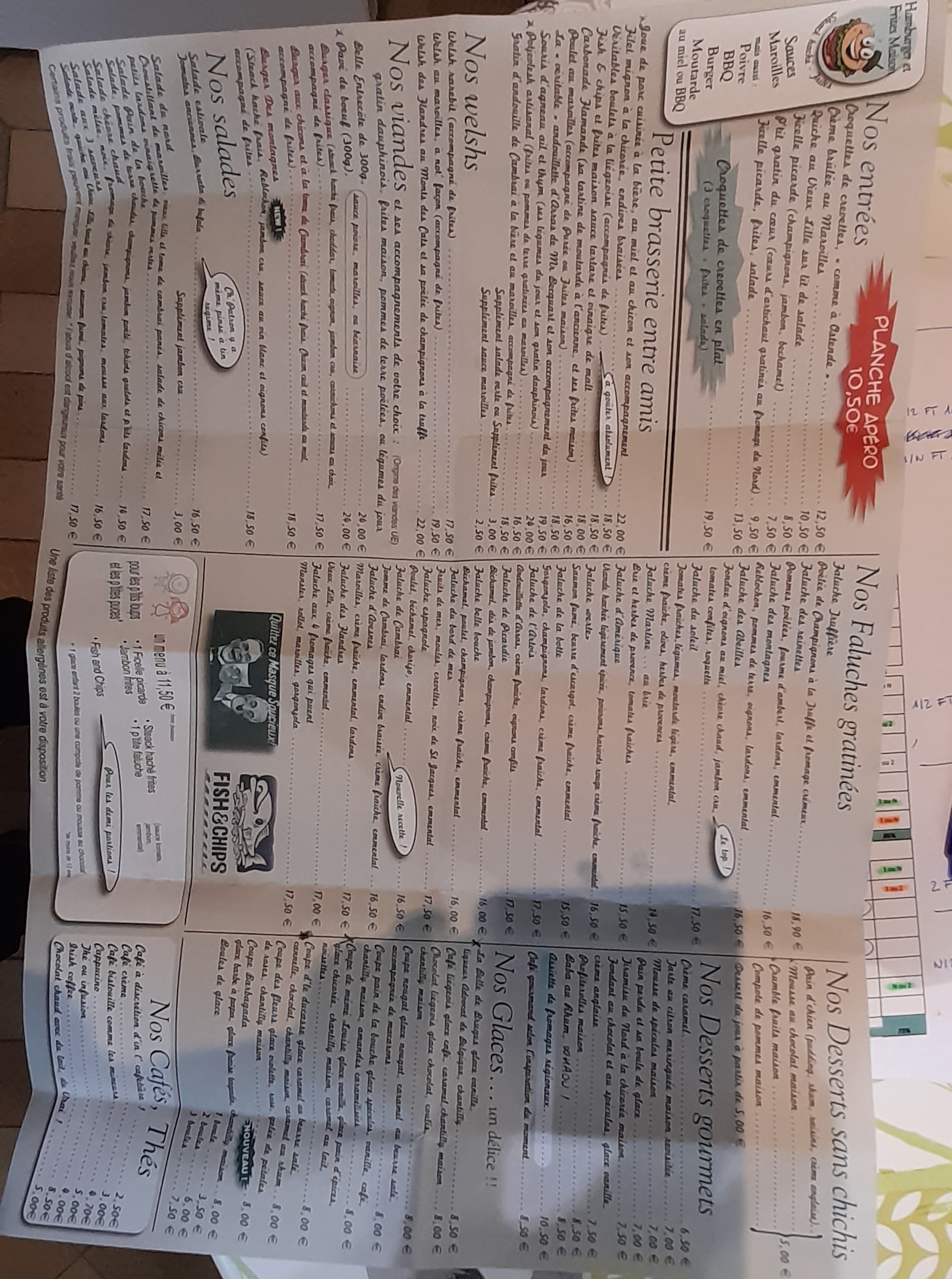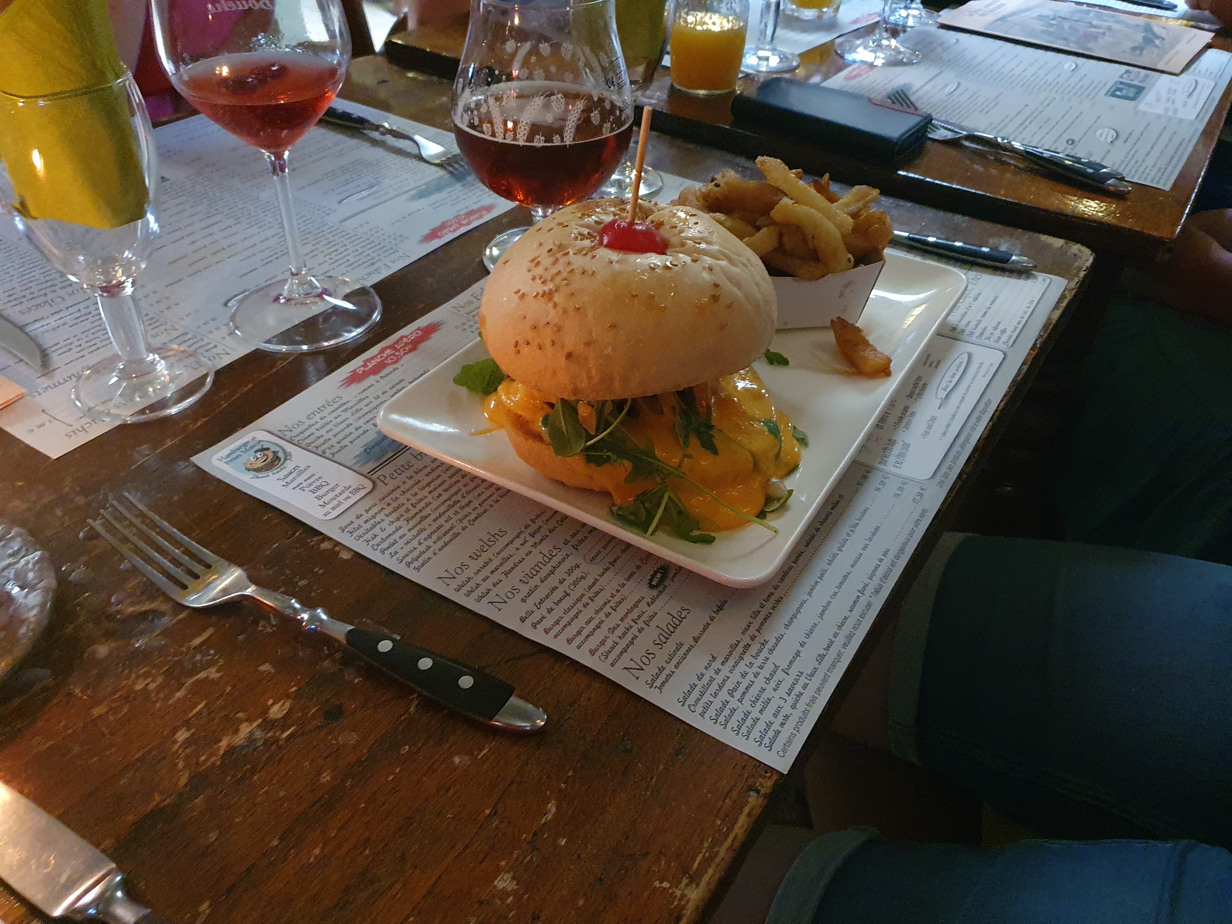 Une ambiance sympathique, un welsh exelent juste les frites que je trouve un peut trop grasse.Pour conclure un bon restaurant et personnel sympa à l écoute de ces clients.