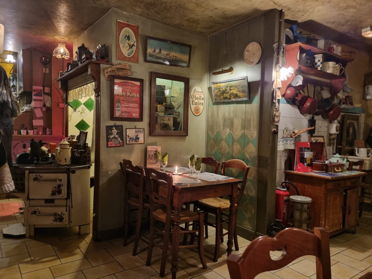 Comme a la maison, le décors chiné de brocante nous replonge dans l ambiance des maisons de nos grands parents avec les plats typiques du nord. Un serveur impliqué, et qui rythme bien le déroulé du repas. Belle et bonne adresse