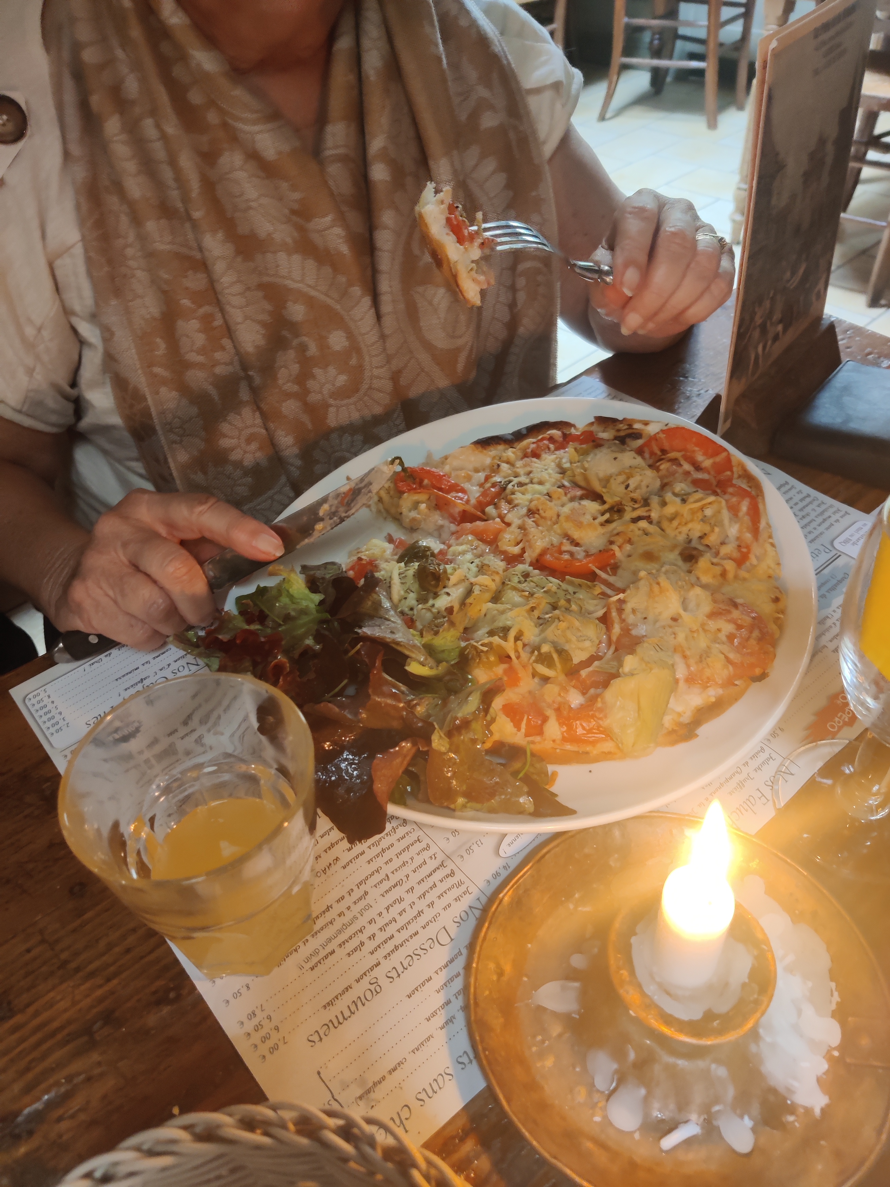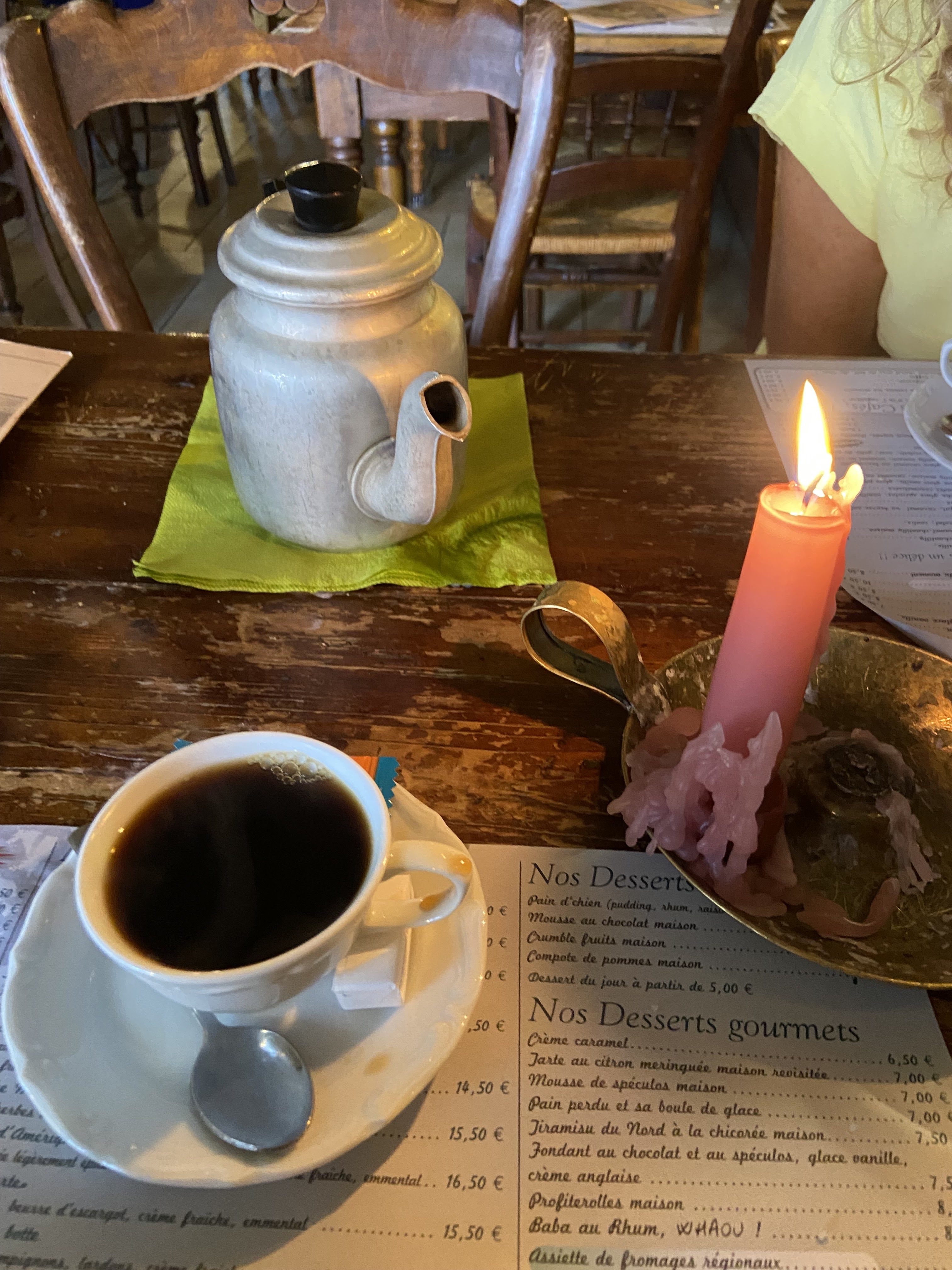 Restaurant typique Sommes éclairés à la bougie Très bon plat du terroir Je recommande