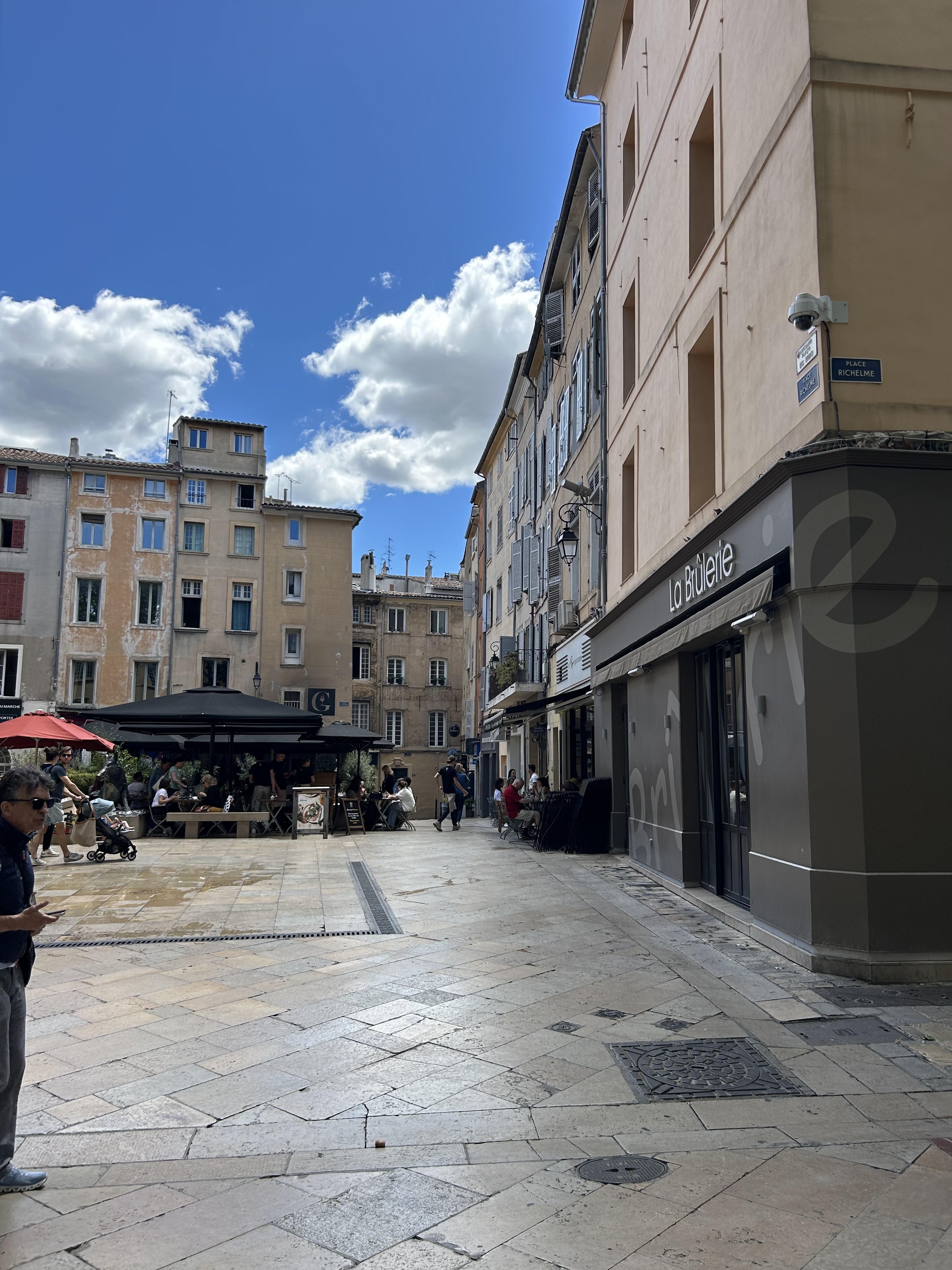 Les gérants sont très sympas et on y mange très bien. Les prix sont partout un peu élevés mais c’est le prix pour la qualité. Il y a une grande terrasse qui permet de profiter de la place Richelme et du soleil