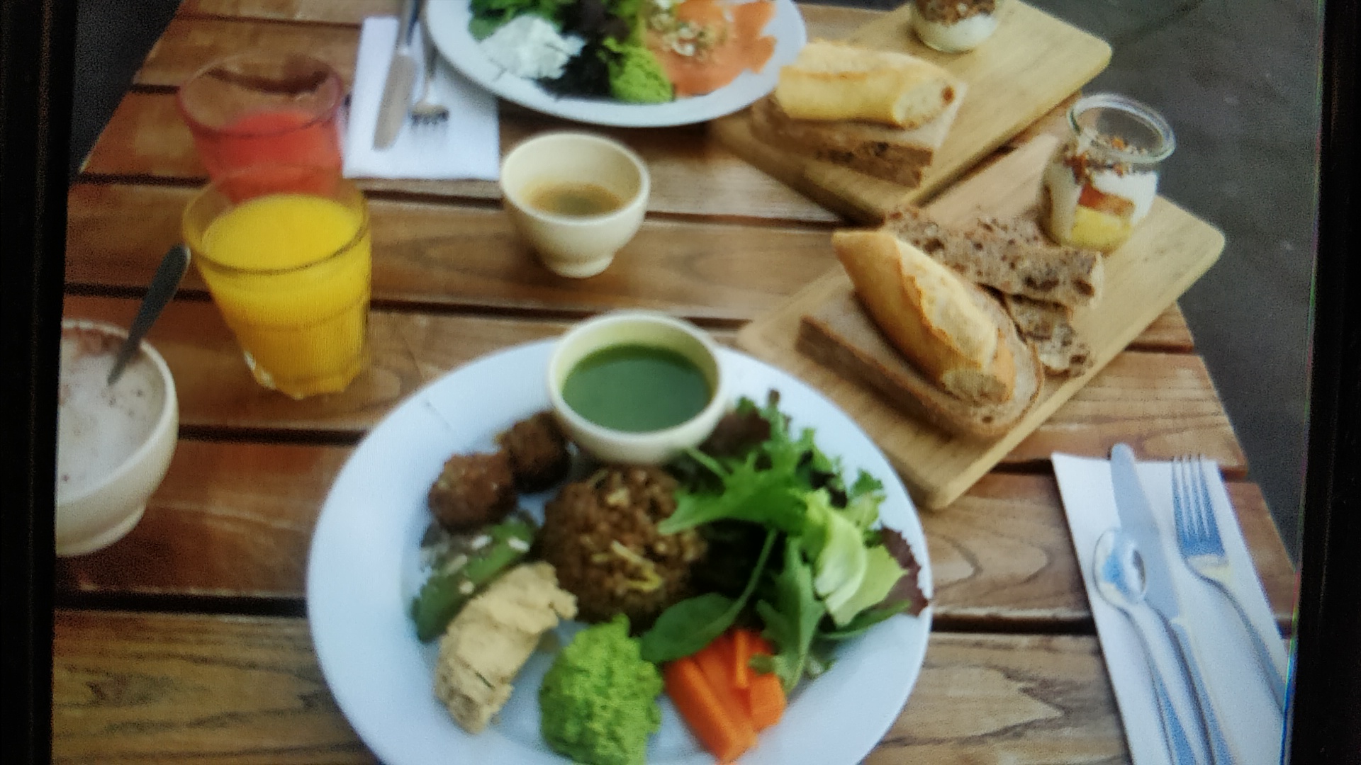 Brunch copieux et délicieux. Cependant, le personnel de cette boulangerie n'est pas du tout organisé (oubli des boissons chaudes, des boissons froides des cuillères, etc). Je préfère aller dans les autres boulangeries Le Pain Quotidien.