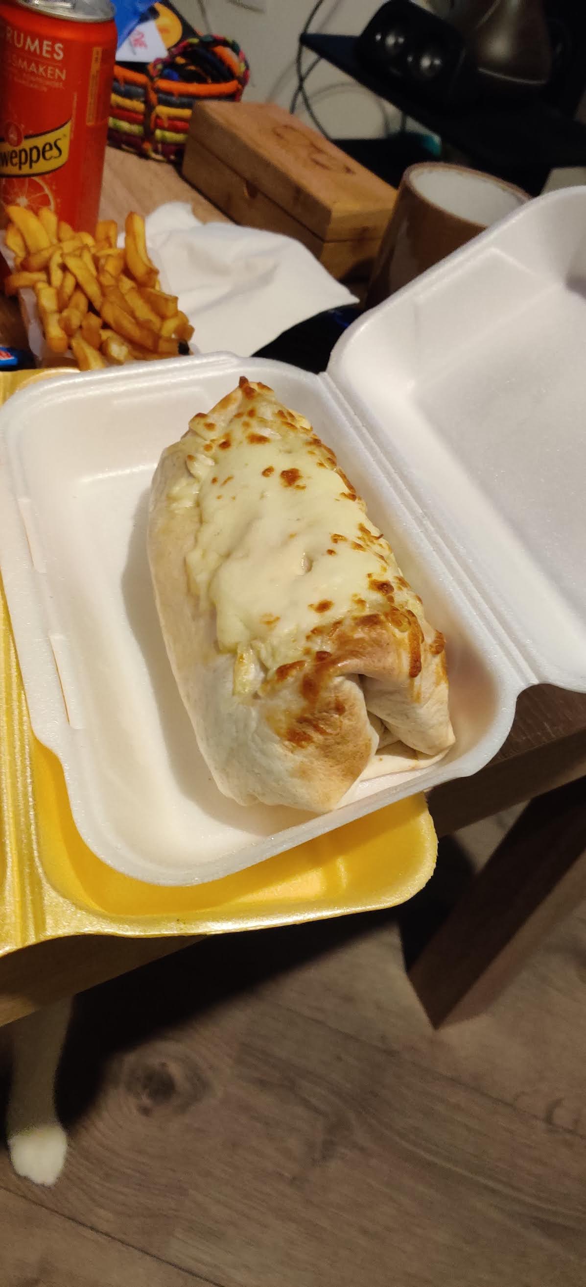 en plus de 15 min de retard le tacos pas bon du tout, sec, et petit. la sauce avait un goût louche et les frites pas bonne du tout surtout quand on a qu’une seule sauce avec.