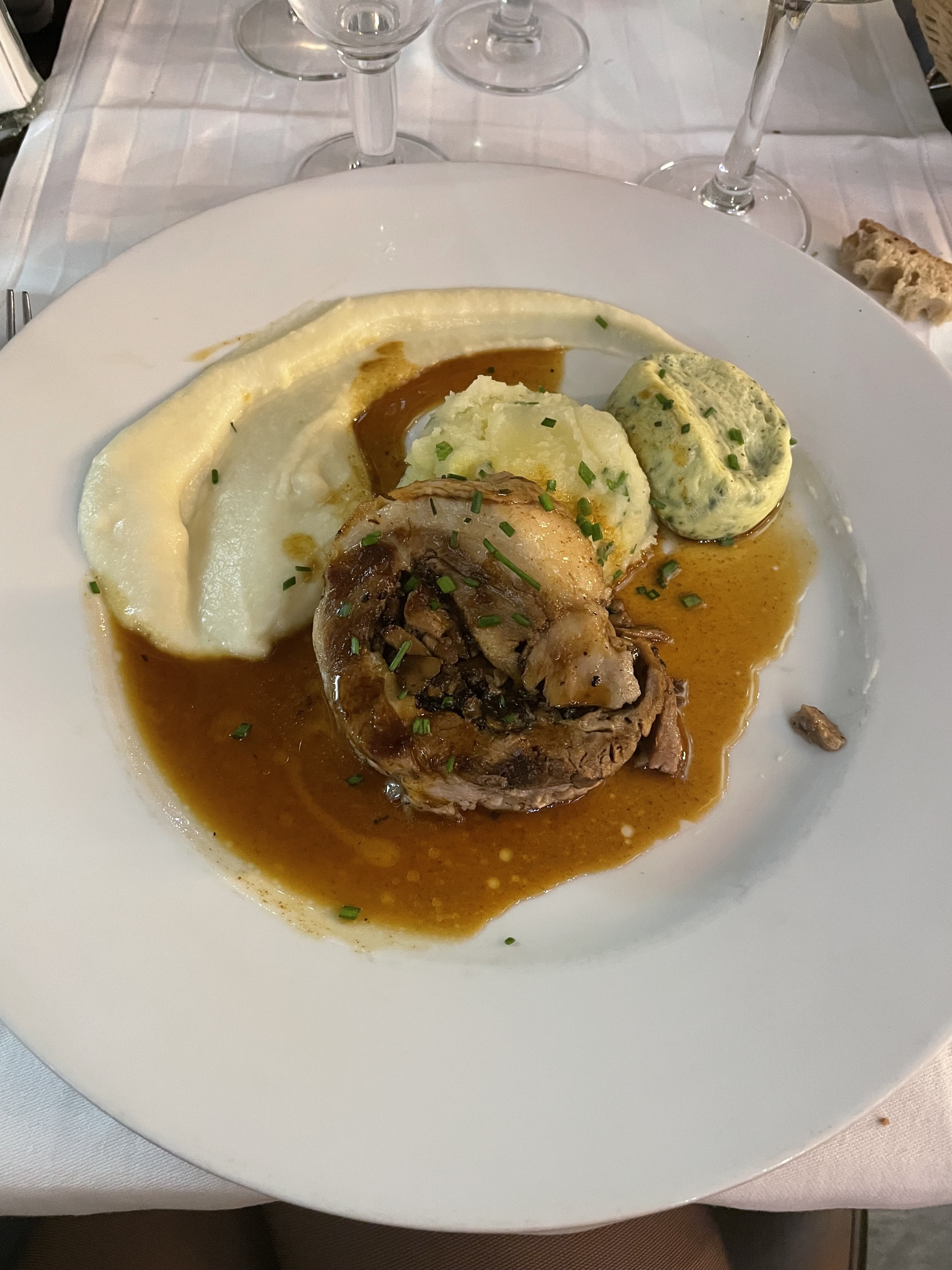 Repas excellent, le médaillon de porc et le bavarois au cassis était exceptionnel. Pas de chance on a dû se contenter de place dehors, mais malgré la fraîcheur extérieur les repas était excellent.