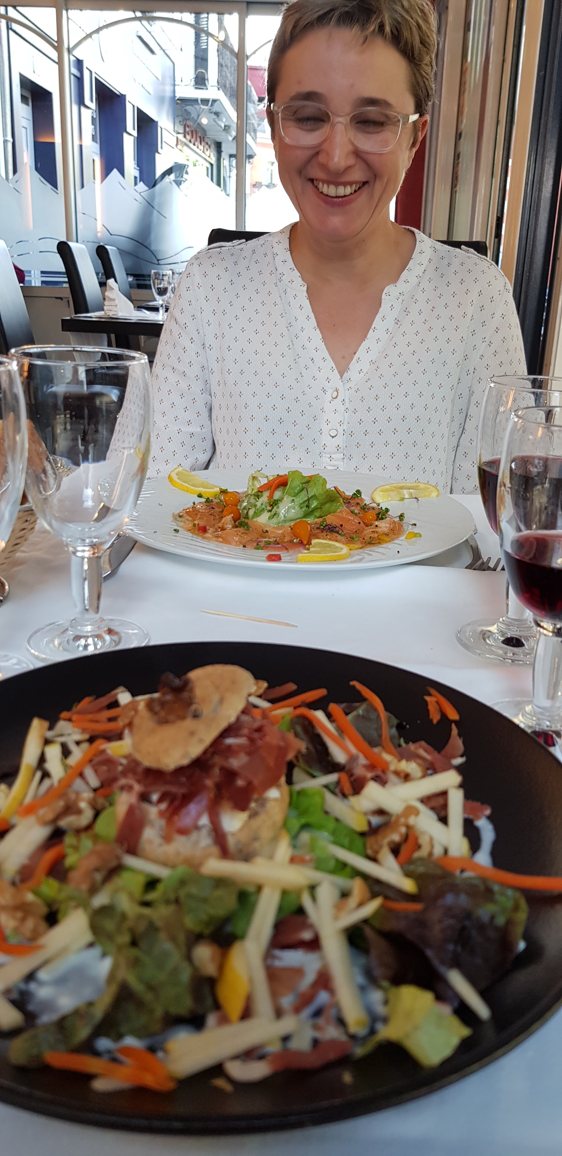 En comparaison avec d'autres restaurants, celui-ci reste mon préféré à Lourdes. Cependant, les portions sont beaucoup trop grosses (et la nourriture est pas assez ou trop cuite) et je n'aime pas (je dirais que je DÉTESTE) gaspiller de la nourriture. A chaque fois que nous y allons avec mon mari et que nous commandons seulement un plat principal et une entrée ou autre chose, le visage du serveur n'a pas de prix, il a ce visage de pitié et de choc en même temps. Les gars, nous pouvons nous permettre le plat le plus cher de votre menu et commander 10 plats différents, mais à quoi ça sert de faire ça si c'est du gaspillage. À notre question, pouvaient-ils nous donner des petites assiettes pour que nous puissions partager notre nourriture, le visage du serveur est devenu complètement fou. Actuellement, nous vivons à Lourdes et nous reviendrons probablement au restaurant et commanderons de la même manière. Si vous lisez cette critique, ne nous faites plus ça, s'il vous plaît ! P.S. mon pigeon était à moitié brûlé (mais mangeable), tu ferais mieux de travailler un peu mieux tes compétences.