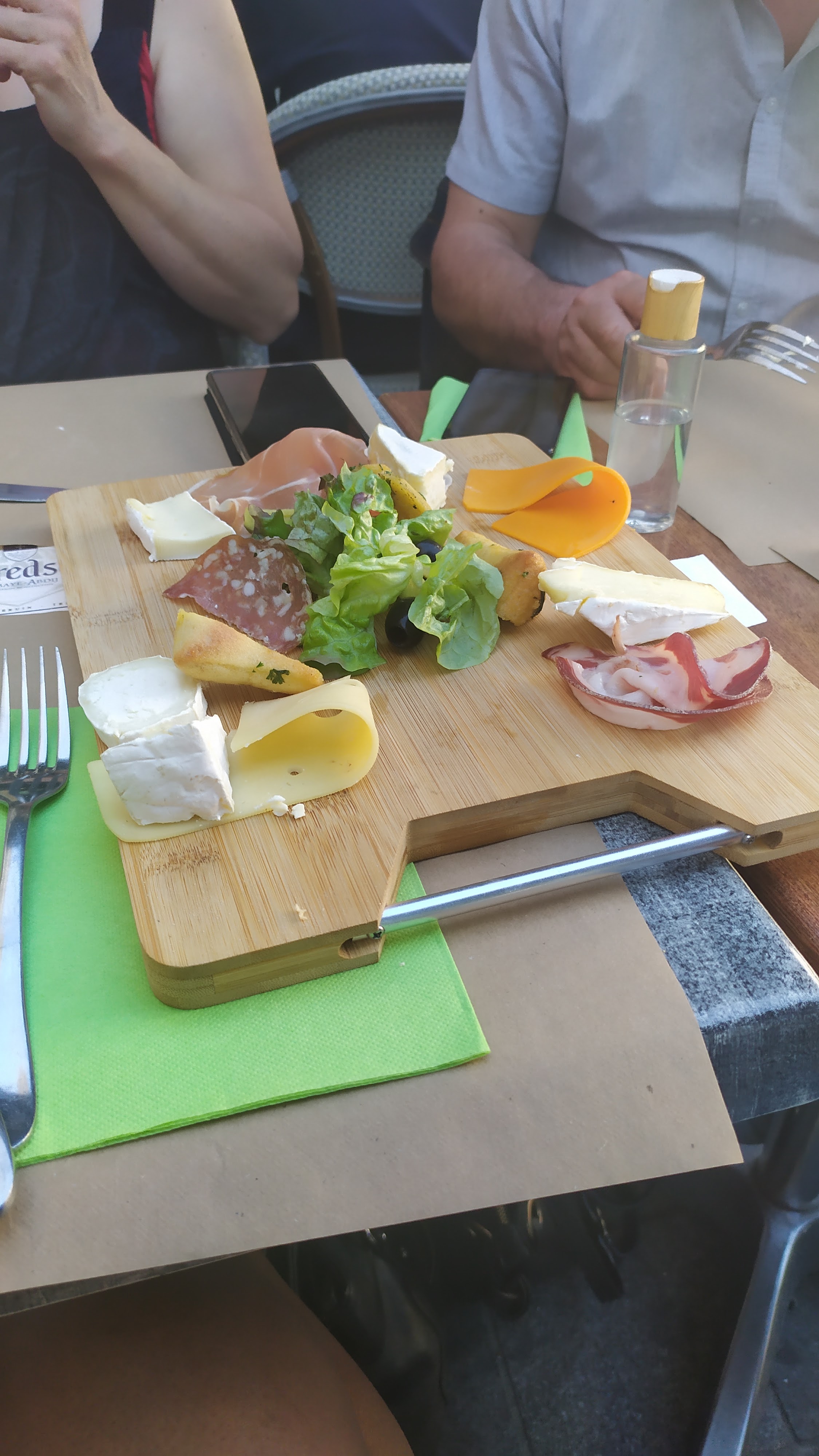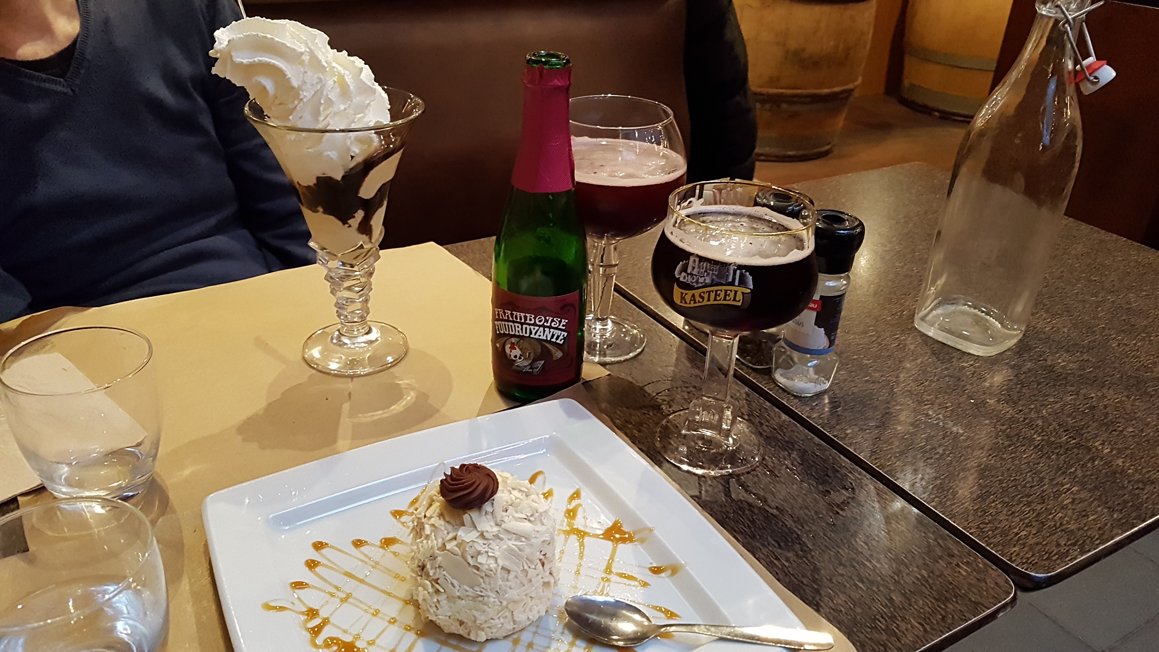 Au sortir de la gare nous avons déjeuner à l’arrière. Nous avons pu déguster un welsch, un potjevleesch accompagné d’une bonne bière locale. 🍺