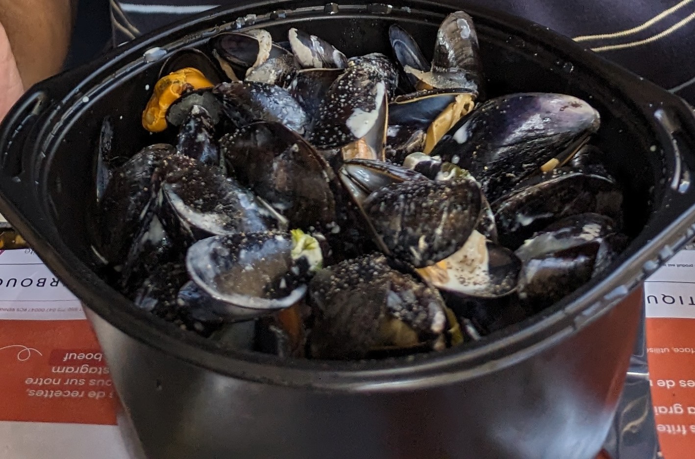 2 moules crème pendant la braderie de Lille. Les frites étaient tièdes, la serveuse, mettant probablement en doute ma réclamation y met les doigts... Sur intervention de son collègue elle reprend aussi les frites de mon amie. Retour des frites chaudes après 3 minutes : ok. Vers la fin de mes moules je demande à la serveuse 2 cuillères pour manger la crème. Après 5 minutes je réitère ma demande... Les 2 cuillères finissent par arriver. Je vais aux toilettes pour me laver les mains... Il y a des papiers au sol devant la caisse. L'odeur d'urine aux toilettes des hommes est suffocante. Les toilettes dames sont en meilleur état selon mon amie. Bref, si la cuisine est bonne et l'ambiance bonne enfant, le service est à revoir.