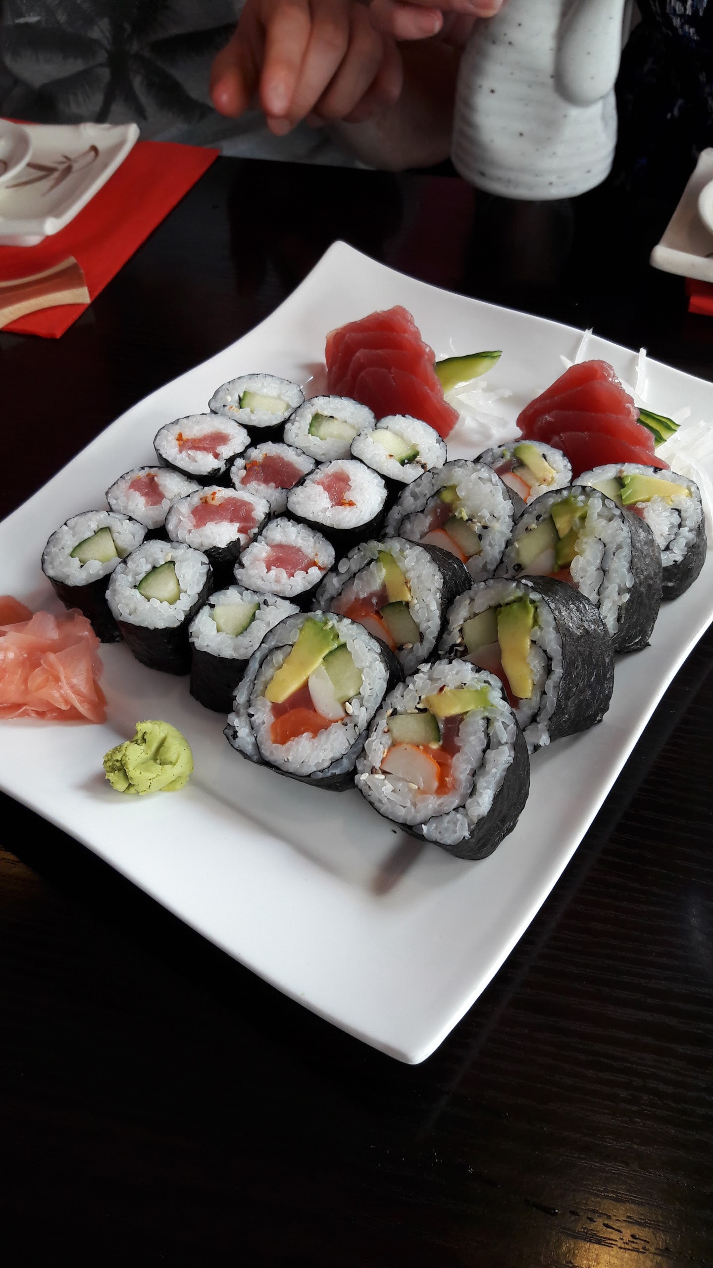 Nous avons pris en famille de 4 personnes, la formule « à volonté » pour environ 20 euros pour les adultes et 11 euros pour notre enfant de moins de 12 ans. Malgré les photos des autres critiques, nous avions prédit que la formule à volonté serait principalement du riz. Dans notre cas (voir photo), la quantité de riz que nous avions par rapport au poisson ou à une autre garniture (avocat) était même ridicule. De plus, nous pensons qu'il pourrait s'agir d'un restaurant japonais tenu par des Chinois (en fait, ce n'est pas un problème, mais si la qualité des sushis se réduit à des portions de riz, c'est à nous) Le service était correct, même si certaines portions ont été oubliées ou livrées tardivement (au crédit du restaurant, la soirée a été chargée)