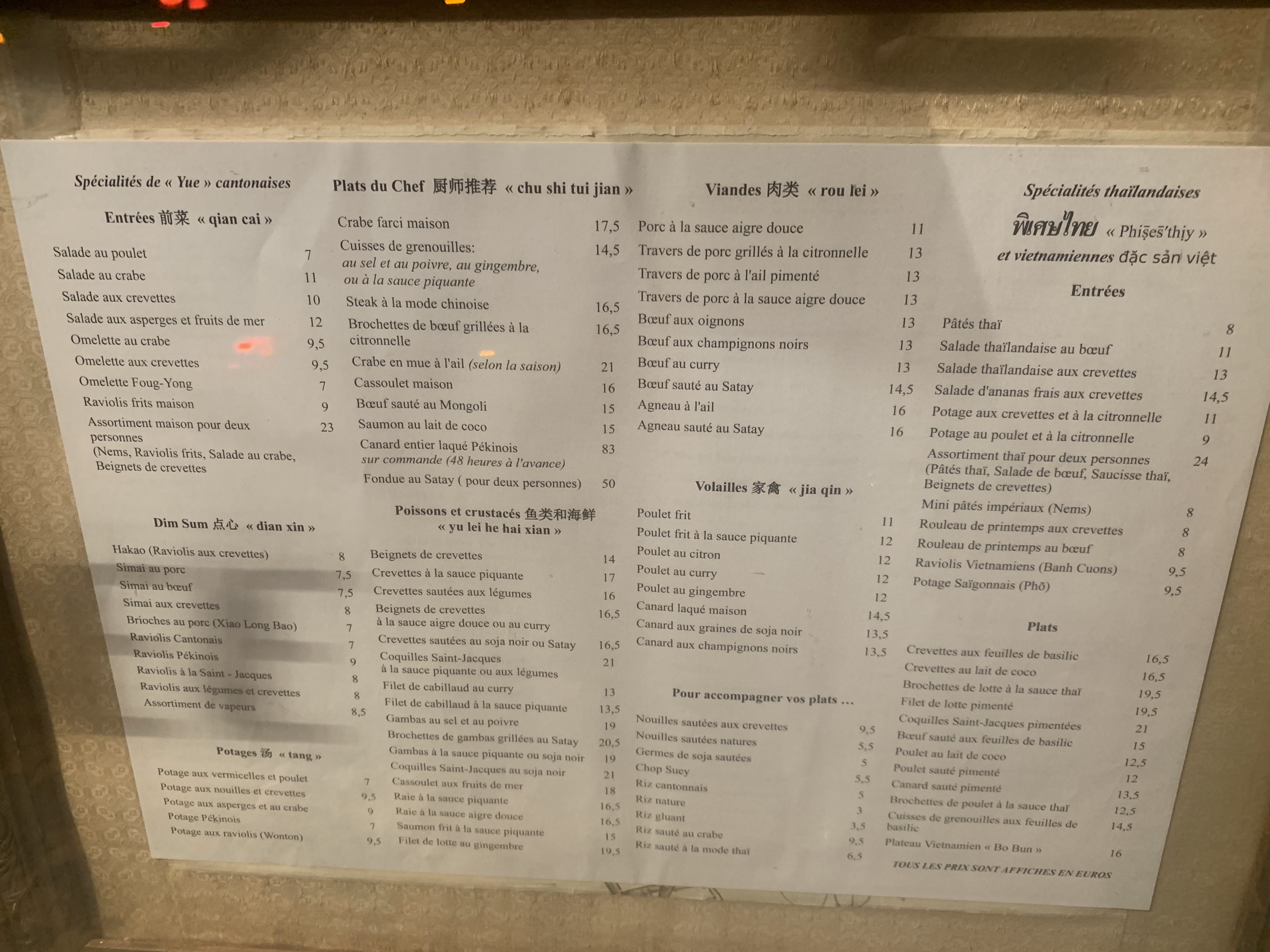 Belle carte avec tout plein de spécialités asiatiques et régionales chinoises