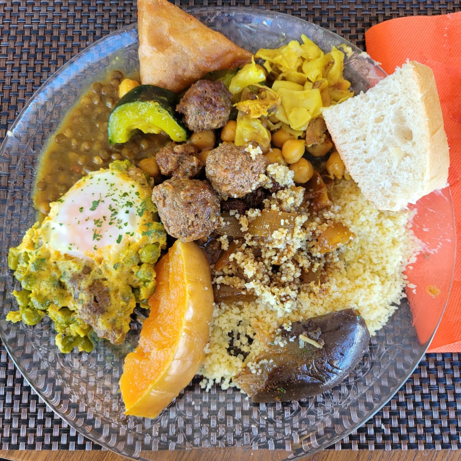 Bonjour , Nous étions 6 à table pour le buffet du midi ,le jeudi 14 octobre, acceuil chaleureux et choix des plats variés.j'ai pris un cocktail délicieux , le couscous était succulent et j'ai goûté à d'autres plats comme : la soupe harira ,le poulet , les msemmen et des petites pâtisseries macrout .j'ai été ravie d'avoir découvert pour la 1ère fois ce restaurant qui est le seul dans la région à proposer un buffet oriental , je compte revenir prochainement, ,(n'hésitez pas à commander un tea à la menthe en fin de repas il est juste divin) ! Merci