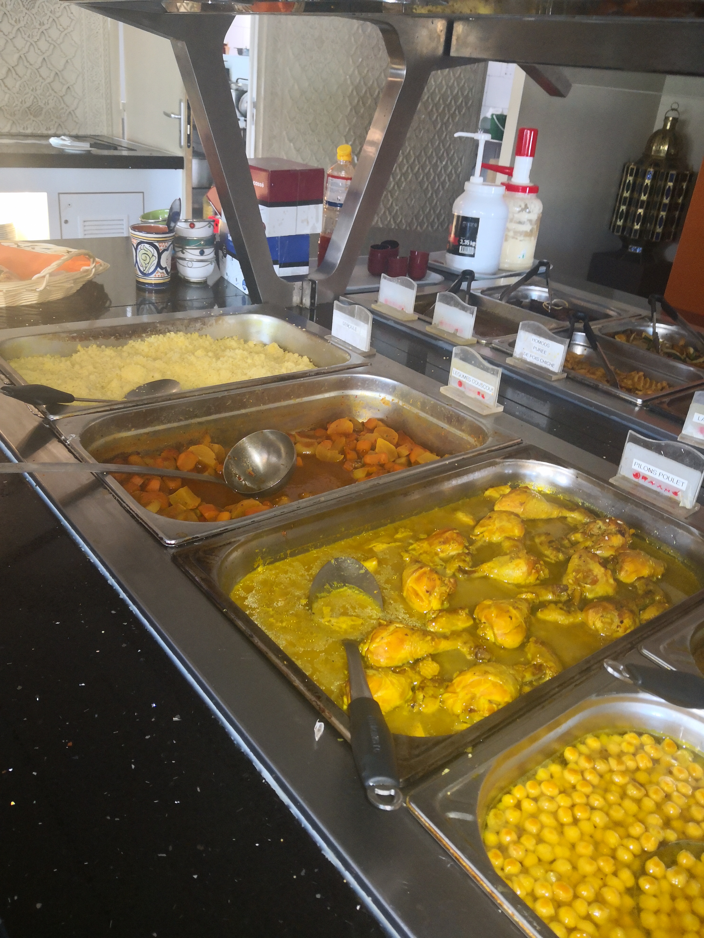Cuisine marocaine, mais goûts assez moyen et bcp de produits réchauffés.