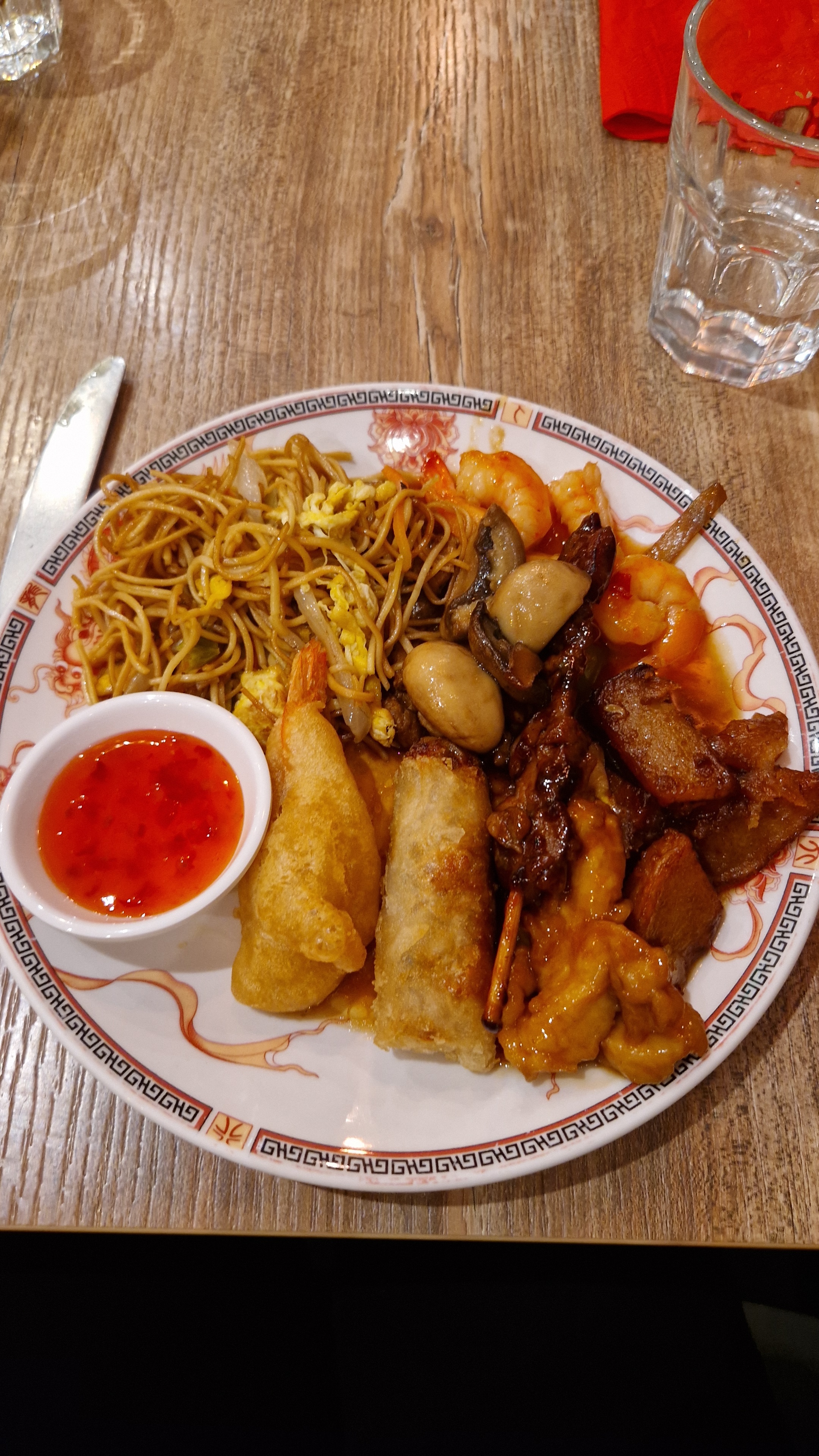 Buffet pas très variés la nourriture on sent bien qu’elle n’est pas du moment pas de pain on nous a sorti en Chine c’est avec les chips aux crevettes ! Ok sa fait quoi les frites dans un buffet chinois? Ou la crème brûlée ? Les desserts bof je ne sais pas je suis peut être habituée à de plus grand et beau resto chinois du dunkerquois… mais je pense qu’il y a des efforts à faire par contre niveau accueil et personnel ne changée rien c’était nikel .